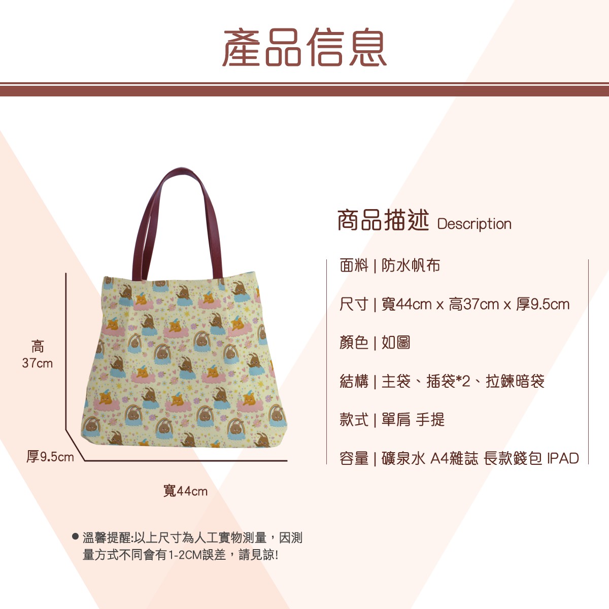 雲朵兔和貓托特單肩包材料包