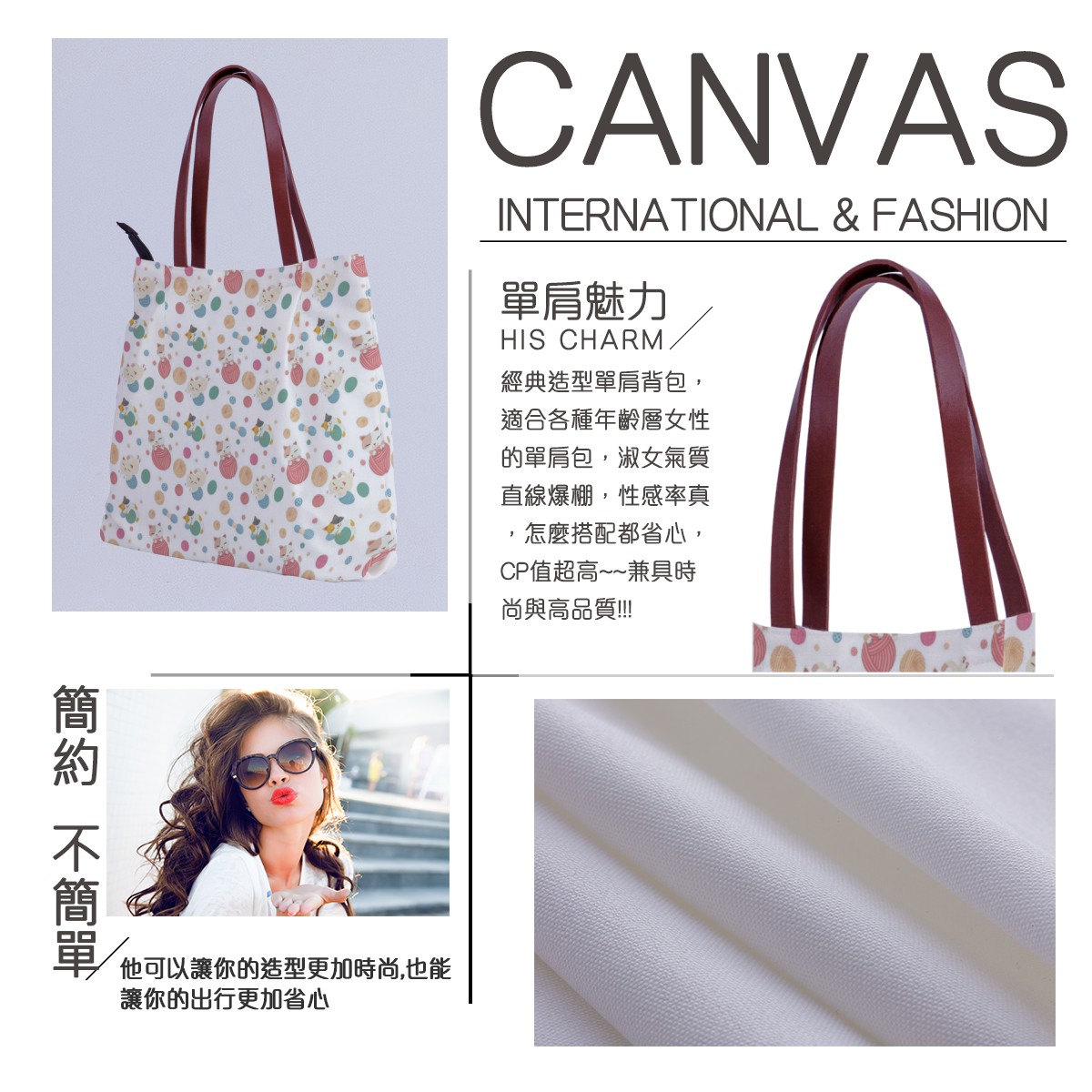 毛線貓可愛帆布包材料包