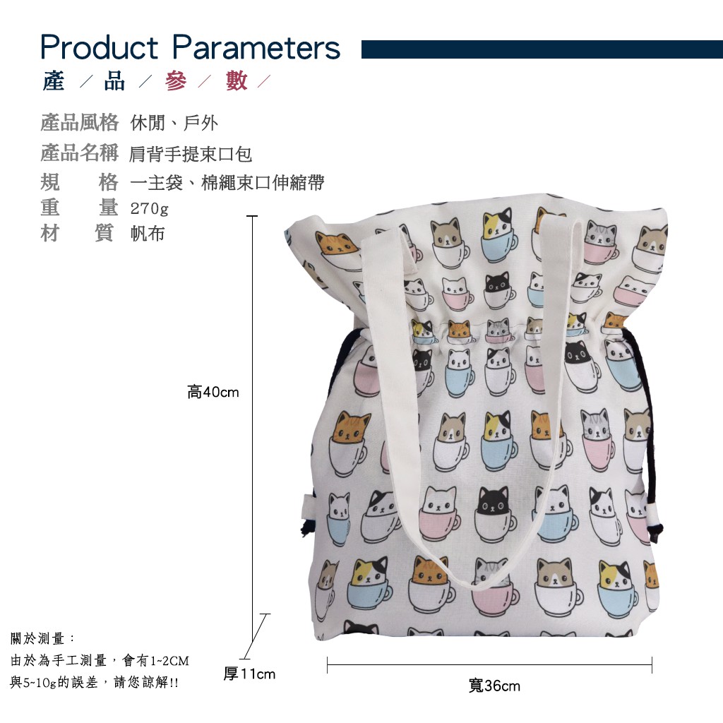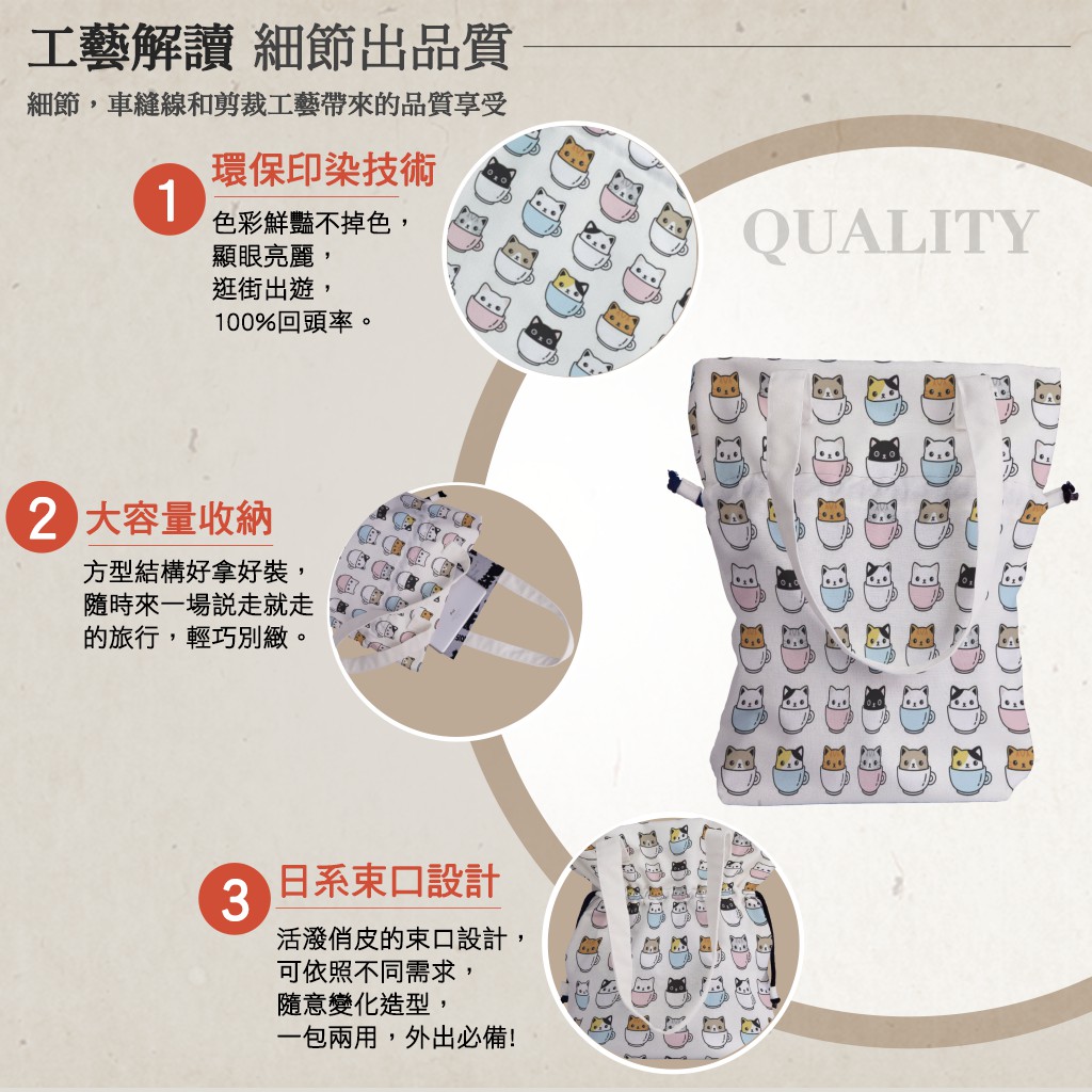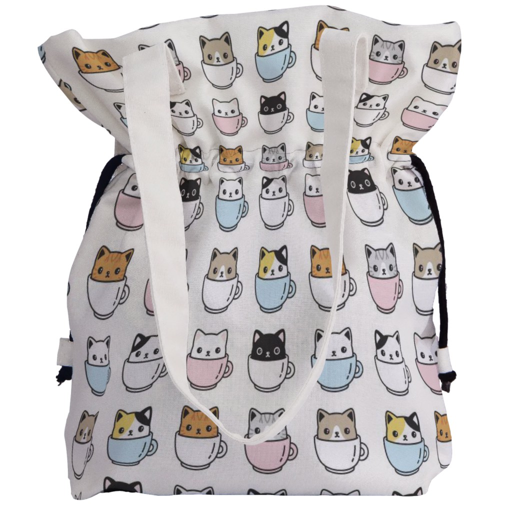 咖啡杯貓手提束口包材料包