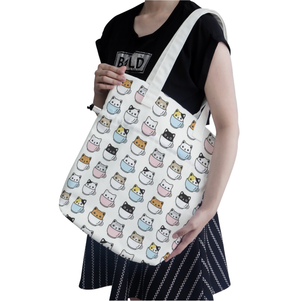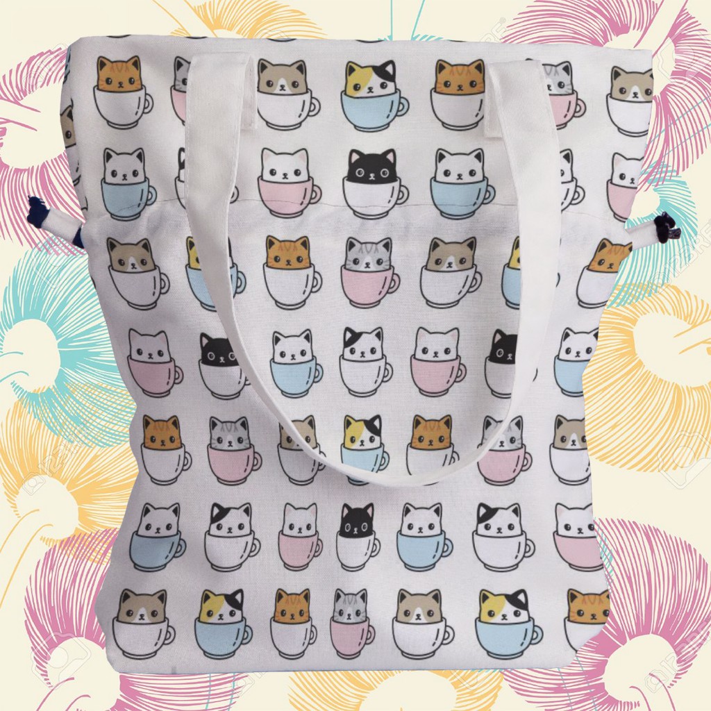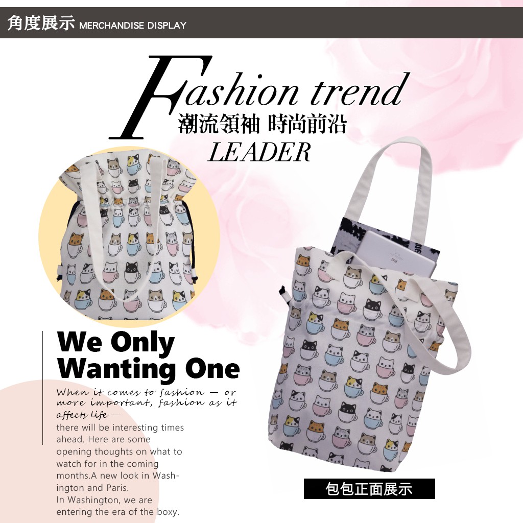 咖啡杯貓手提束口包材料包