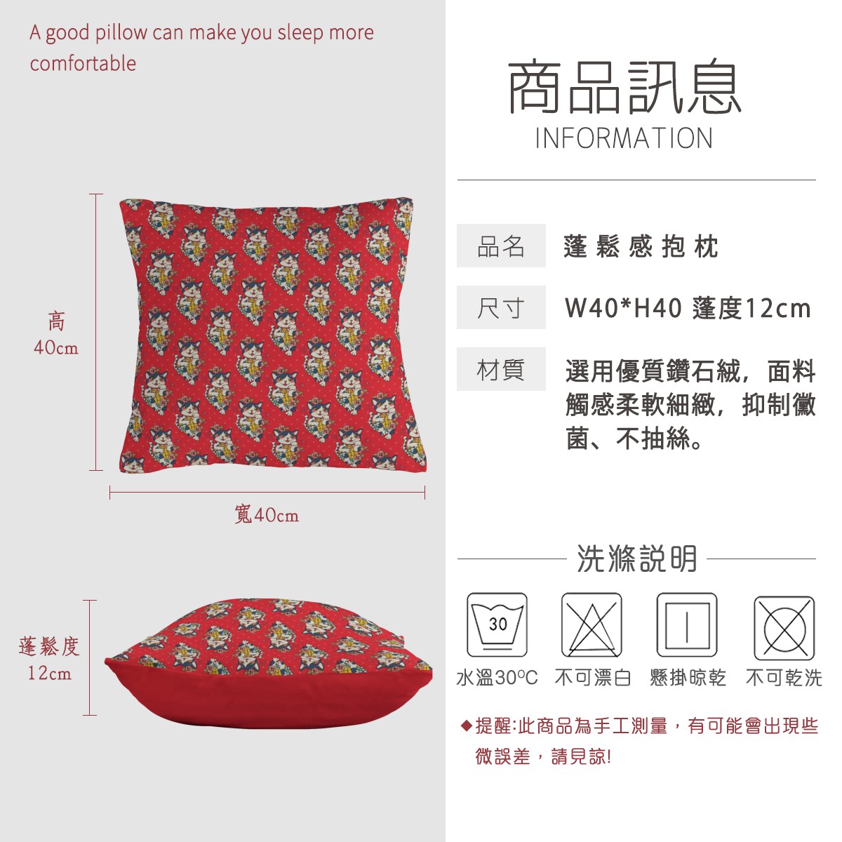 福氣貓柔軟抱枕材料包