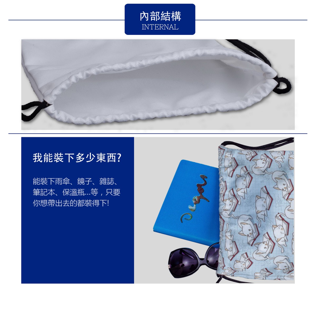 讀書的貓帆布束口背包材料包