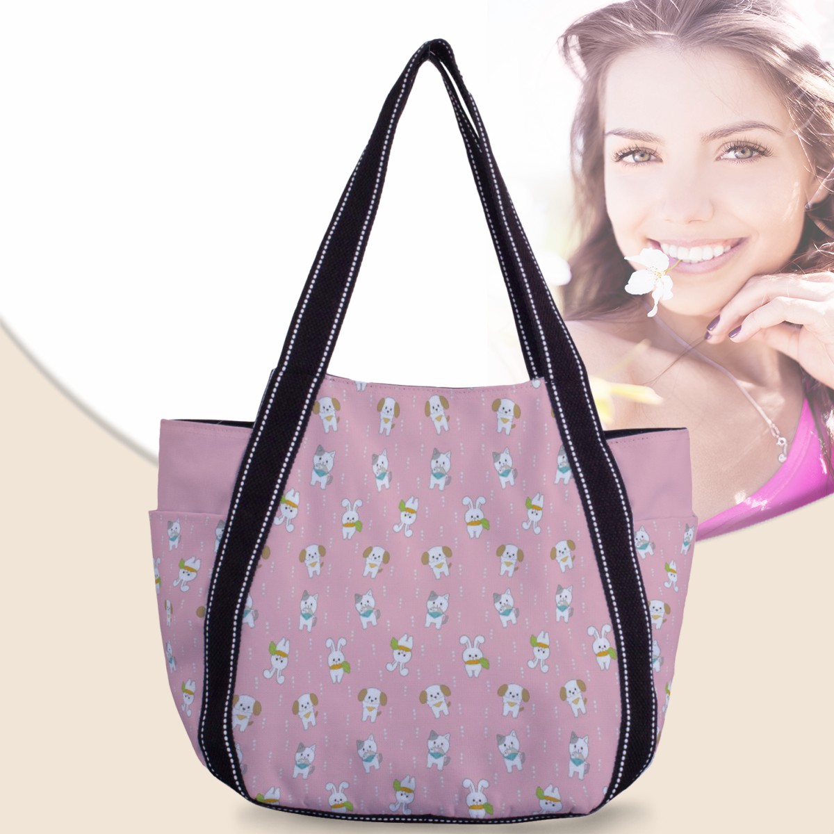 可愛貓和兔大容量單肩包材料包