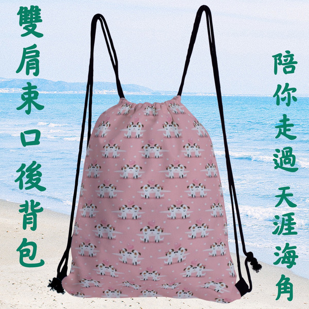 相愛的小狗帆布束口背包材料包