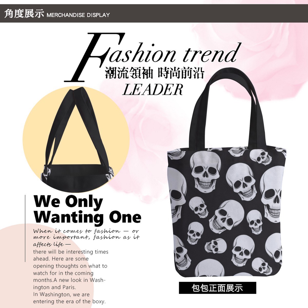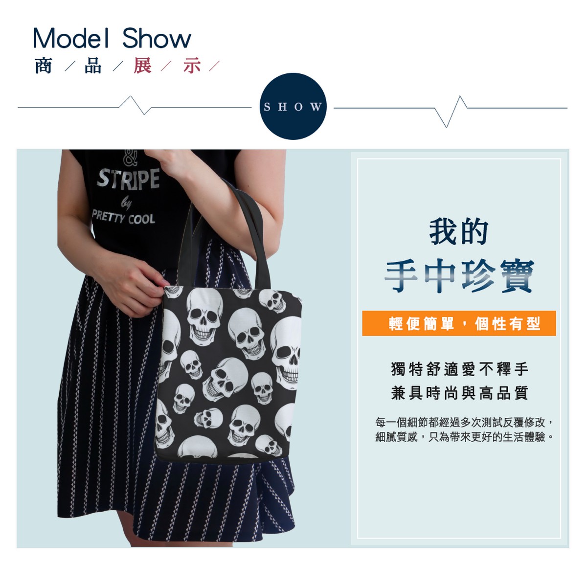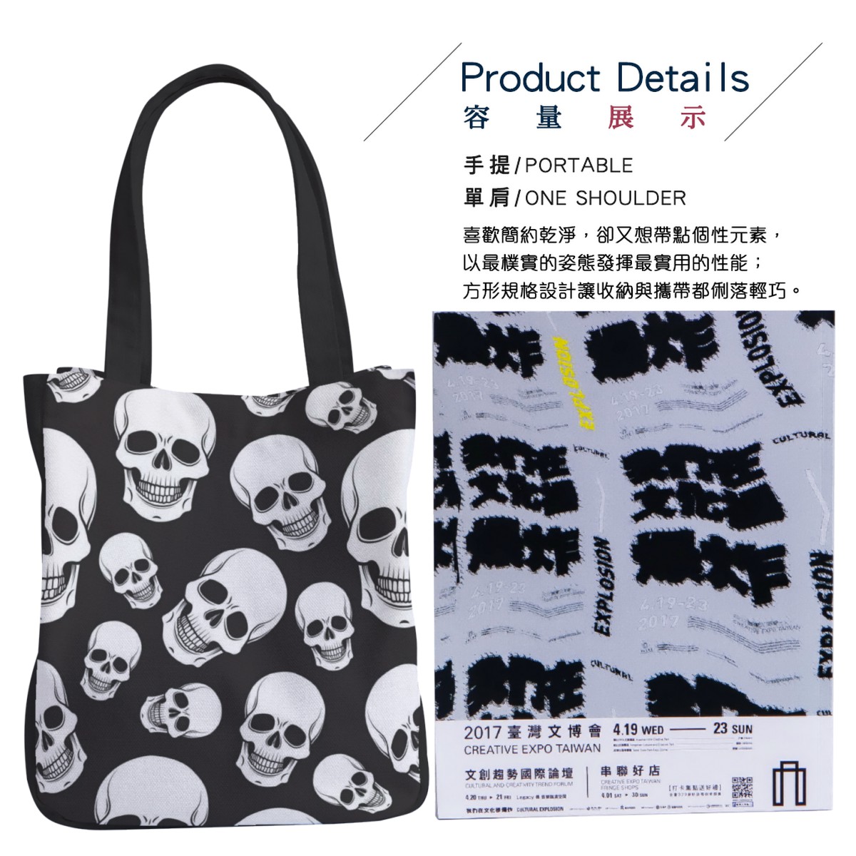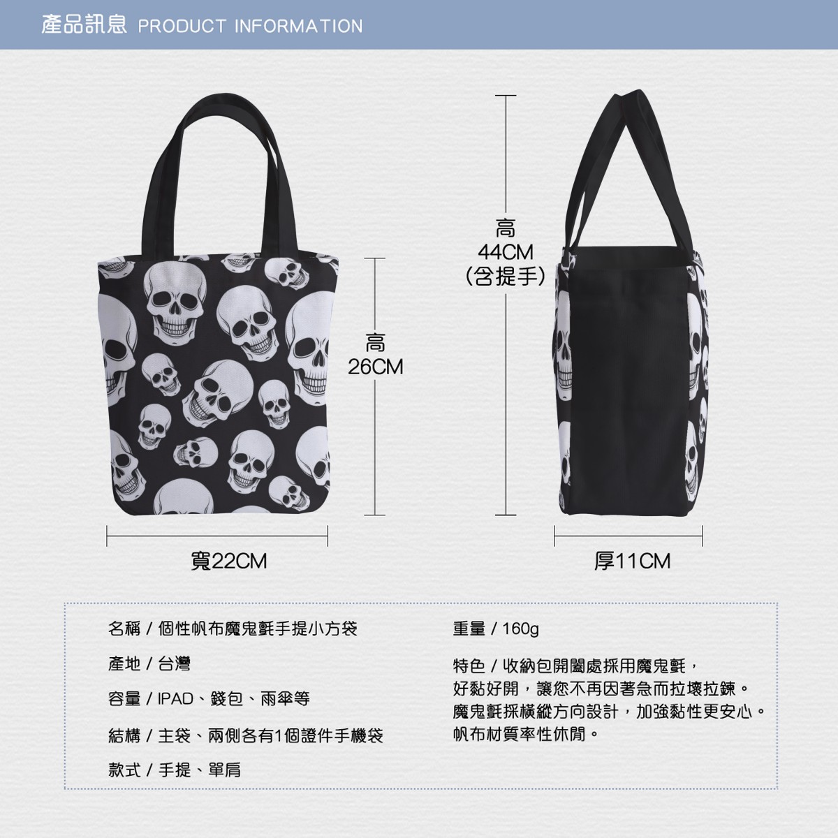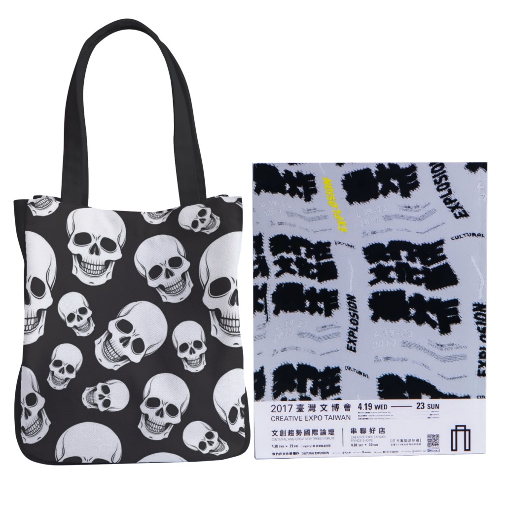 黑底骷髏頭托特單肩包材料包