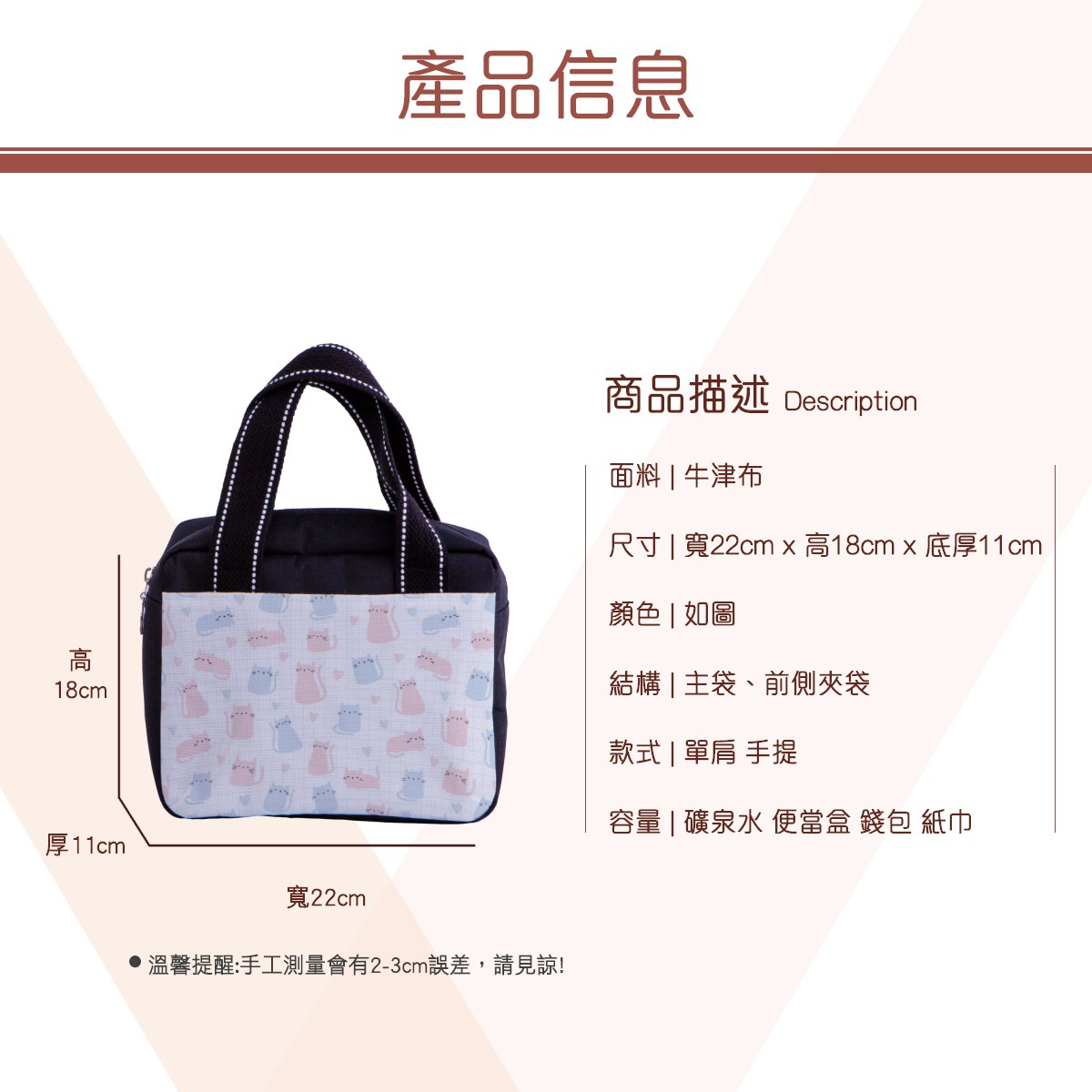 格子與貓咪多功能午餐袋材料包