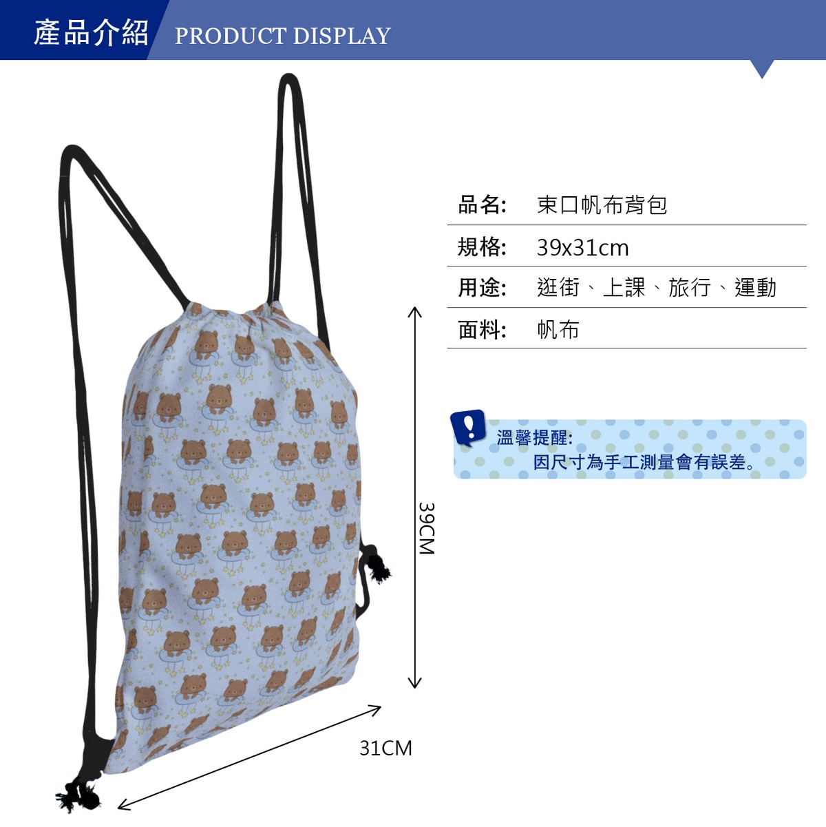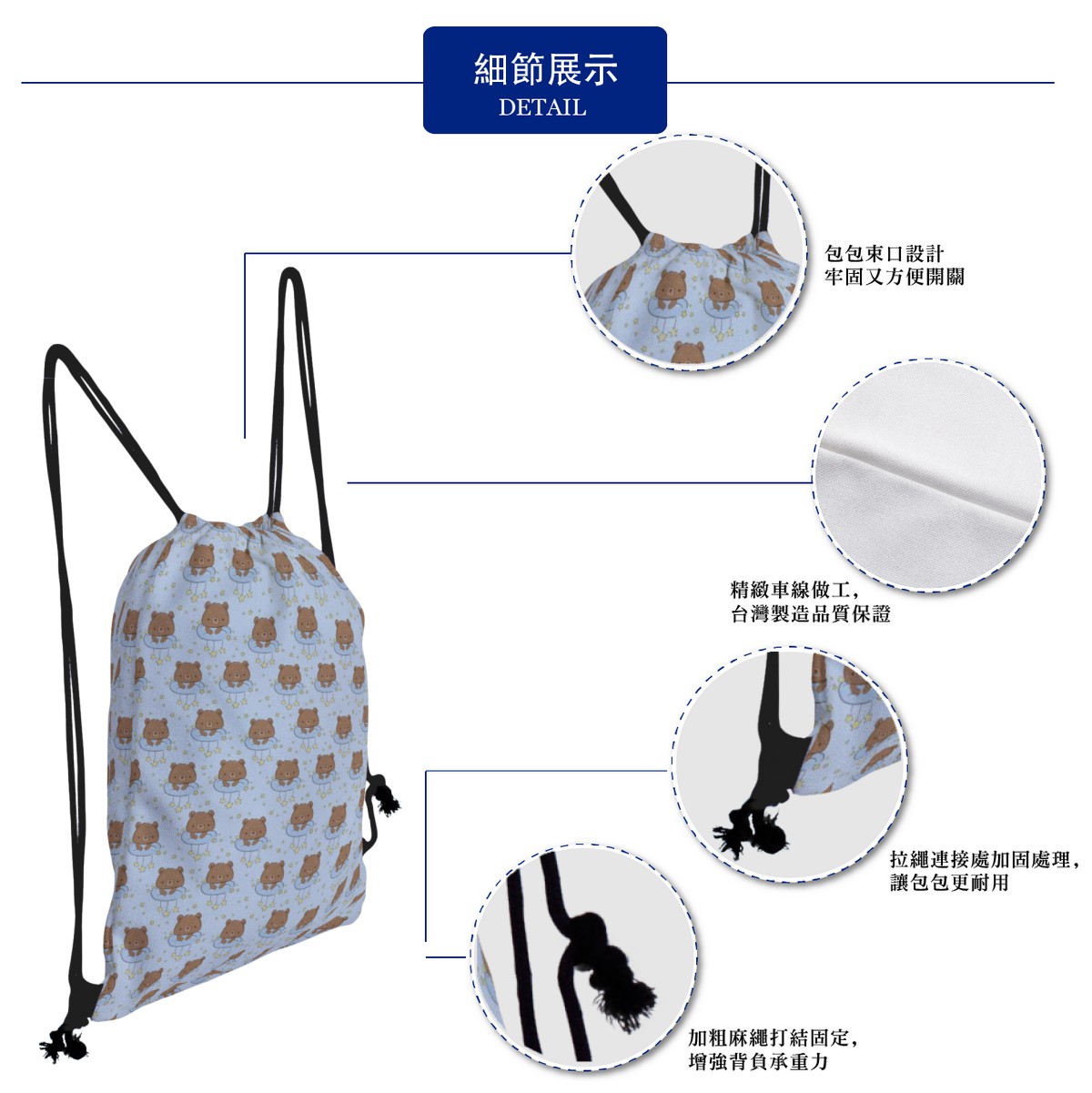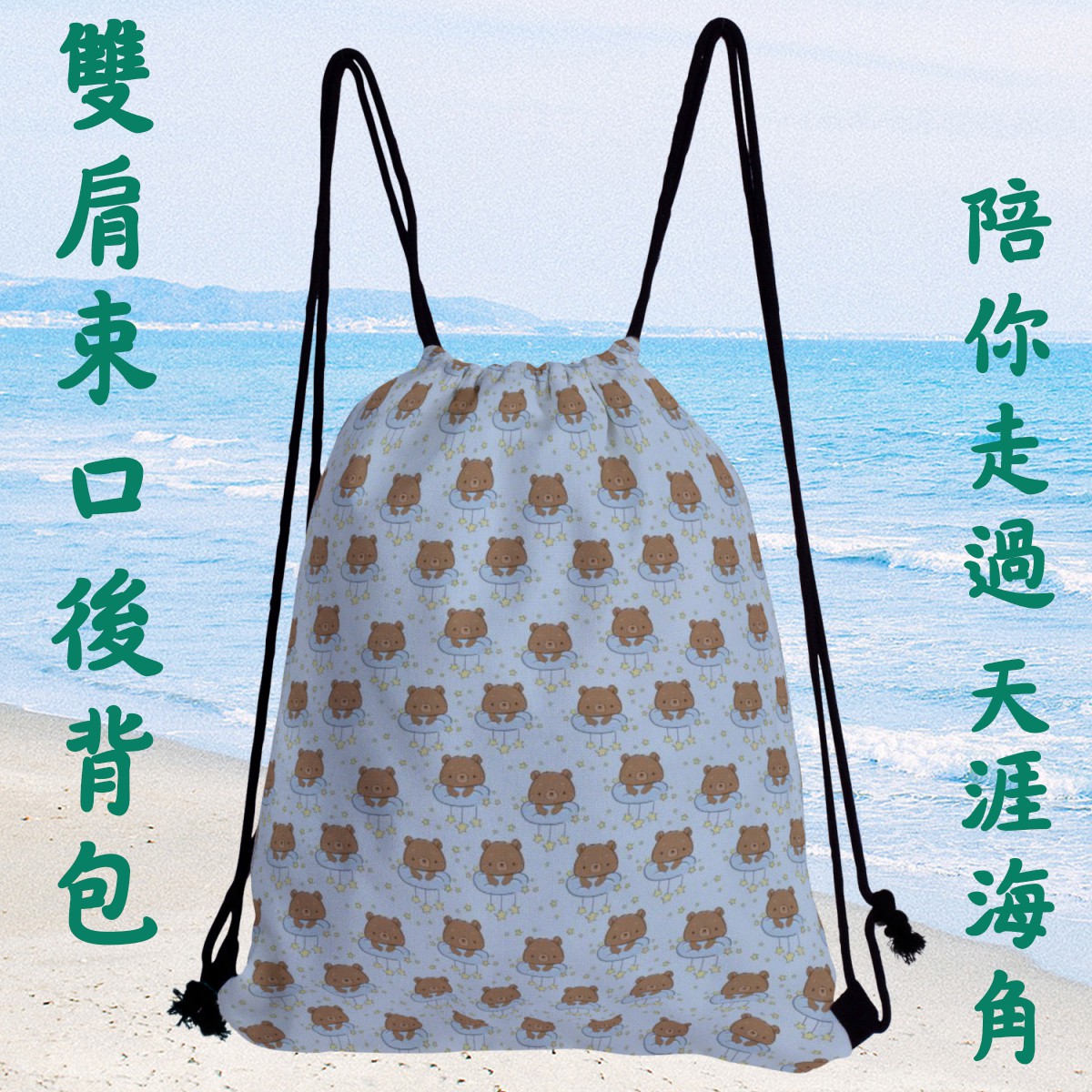 星星抱枕熊帆布束口背包材料包