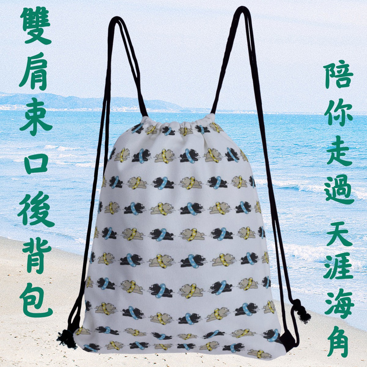 游泳圈熊帆布束口背包材料包