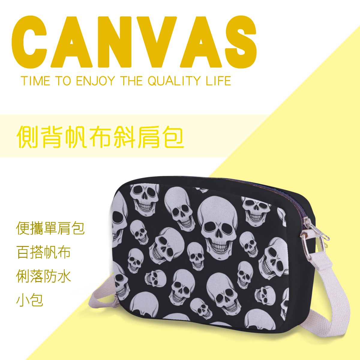 黑底骷髏頭帆布束口背包材料包