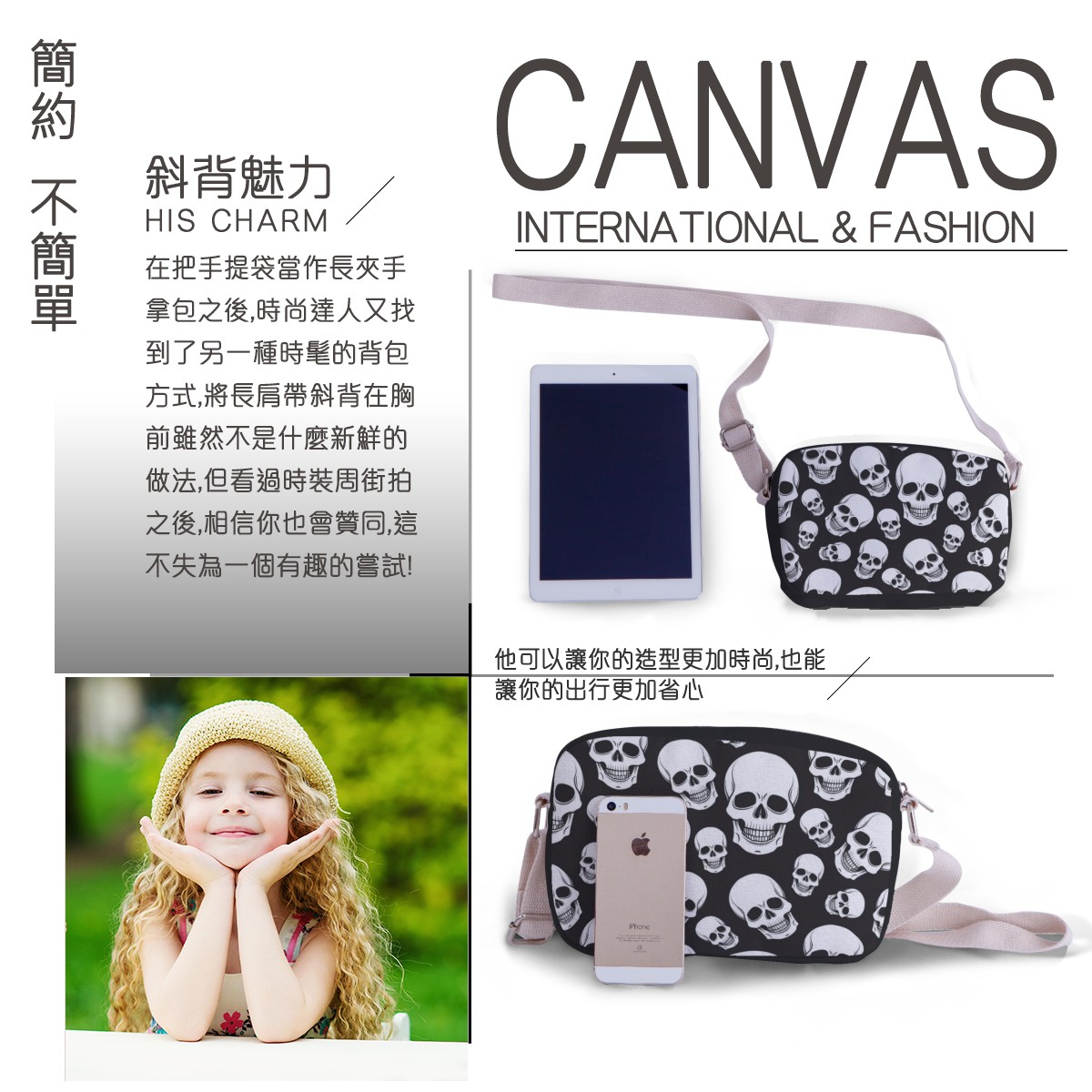 黑底骷髏頭可愛帆布包材料包