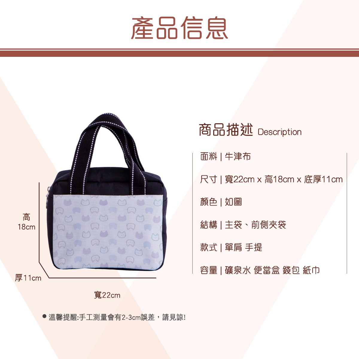 可愛的貓咪多功能午餐袋材料包