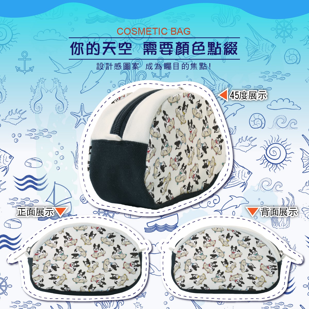 滑板法國鬥牛犬貝殼造型收納包材料包