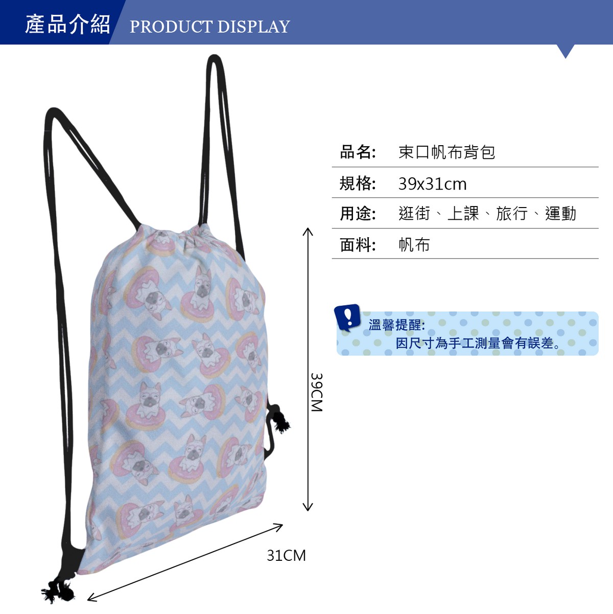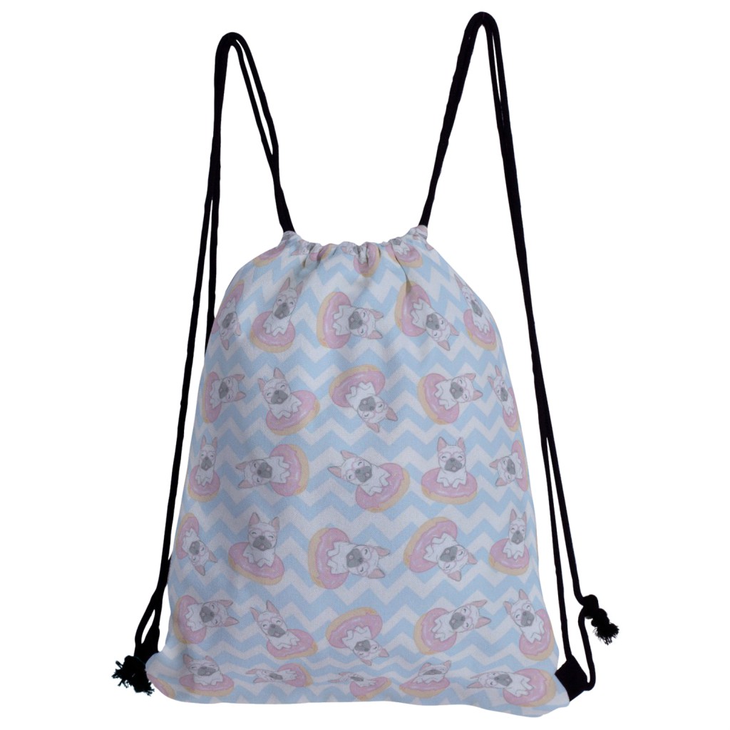 甜甜圈法國鬥牛犬帆布束口背包材料包