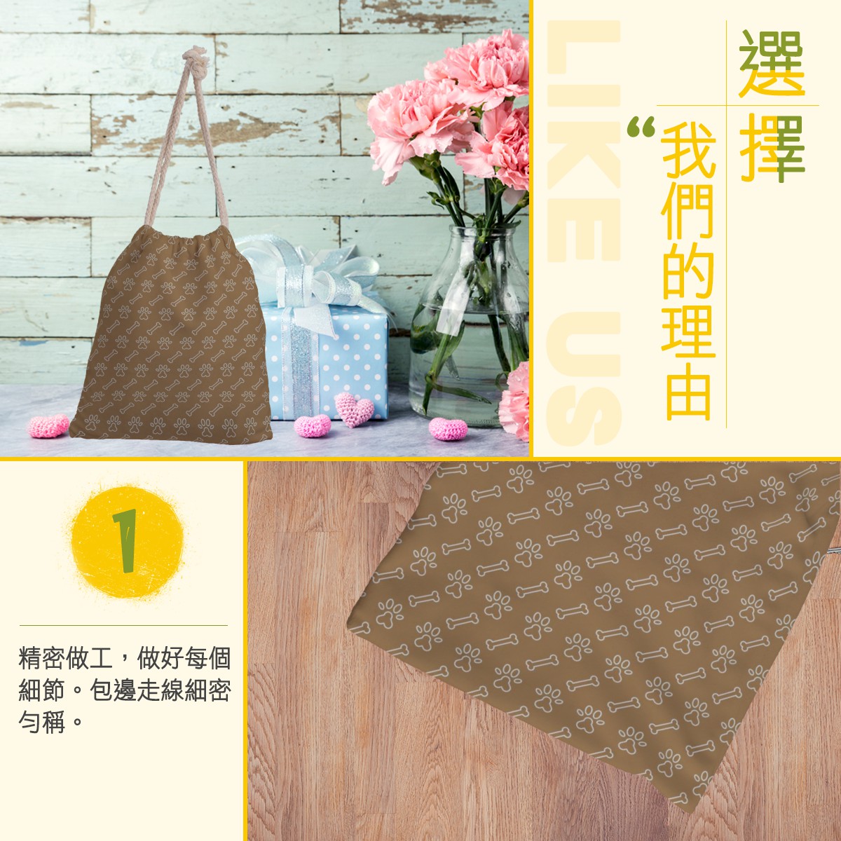 狗腳印狗骨頭收納束口袋材料包