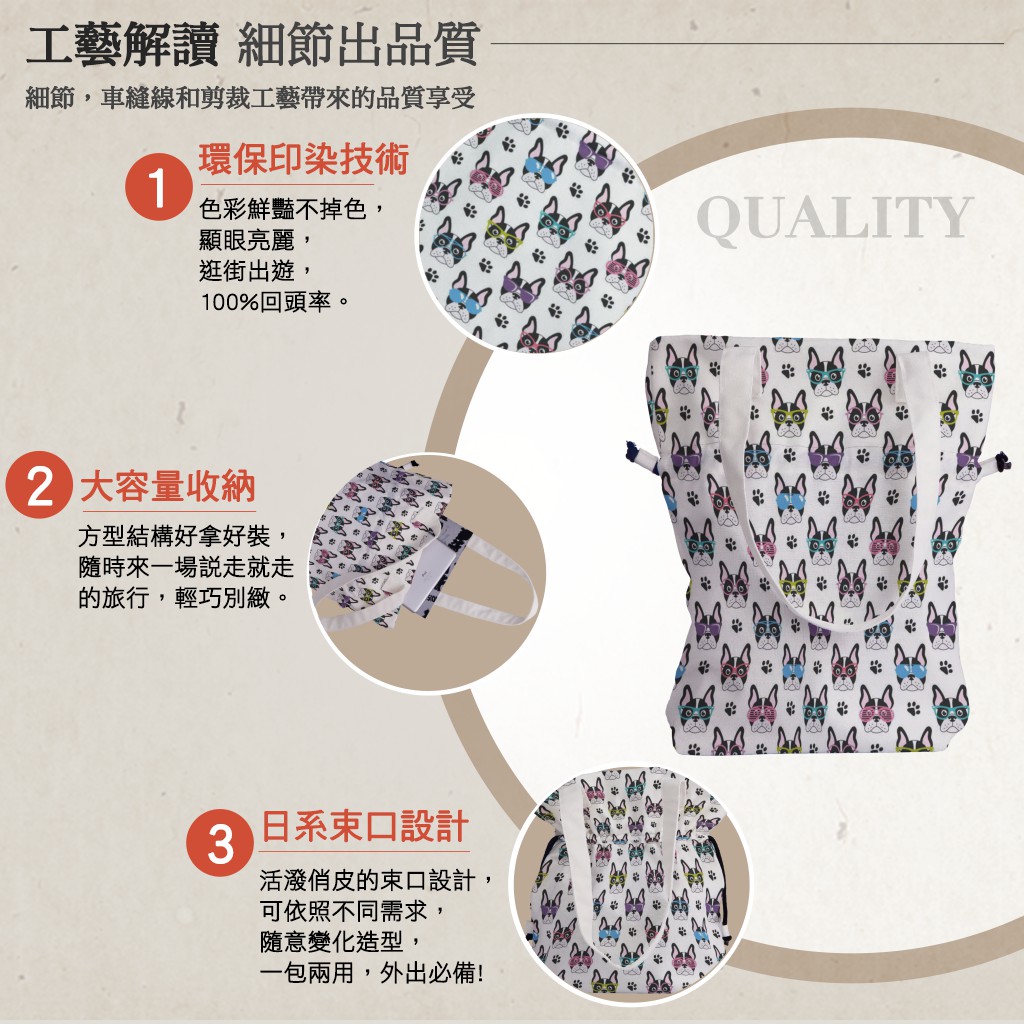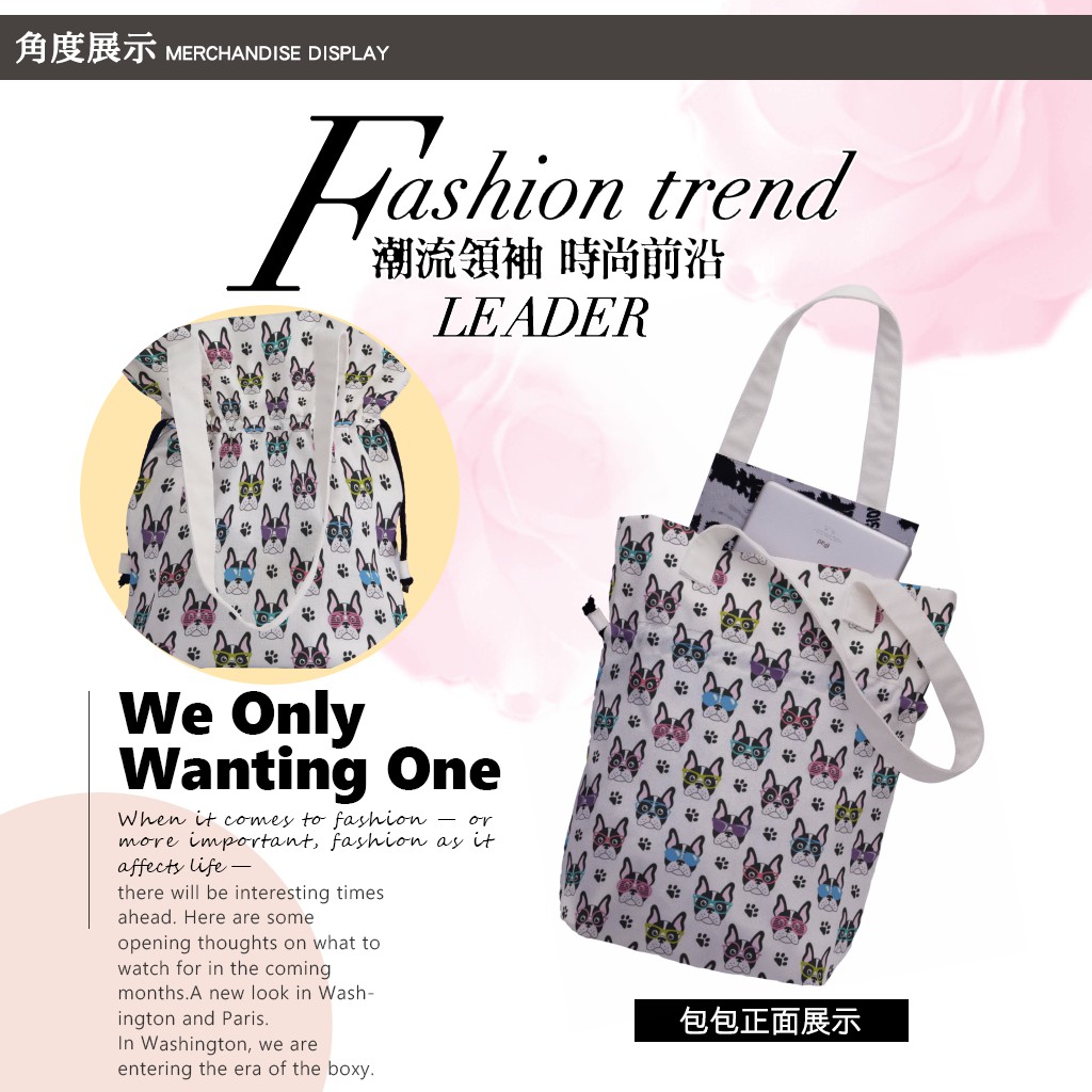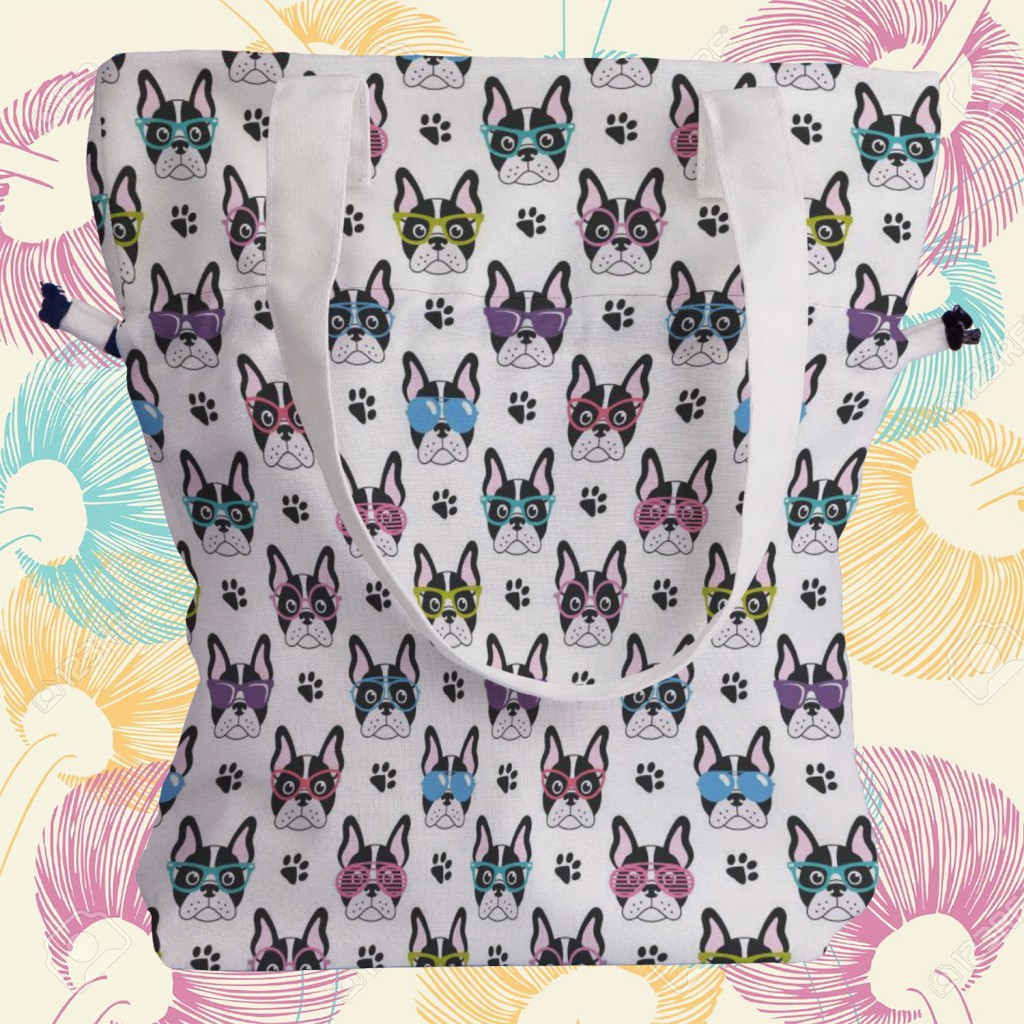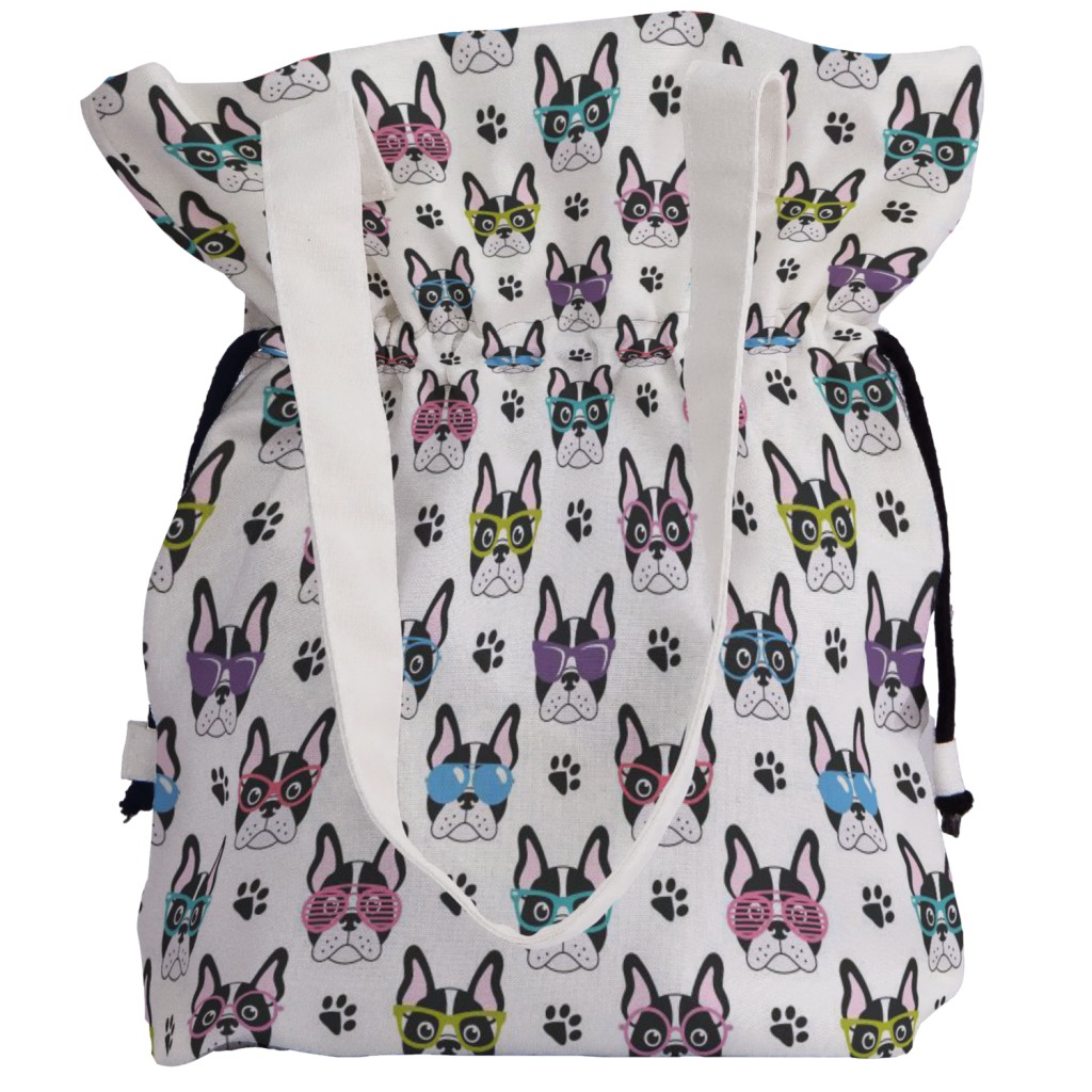 戴眼鏡的法國鬥牛犬手提束口包材料包