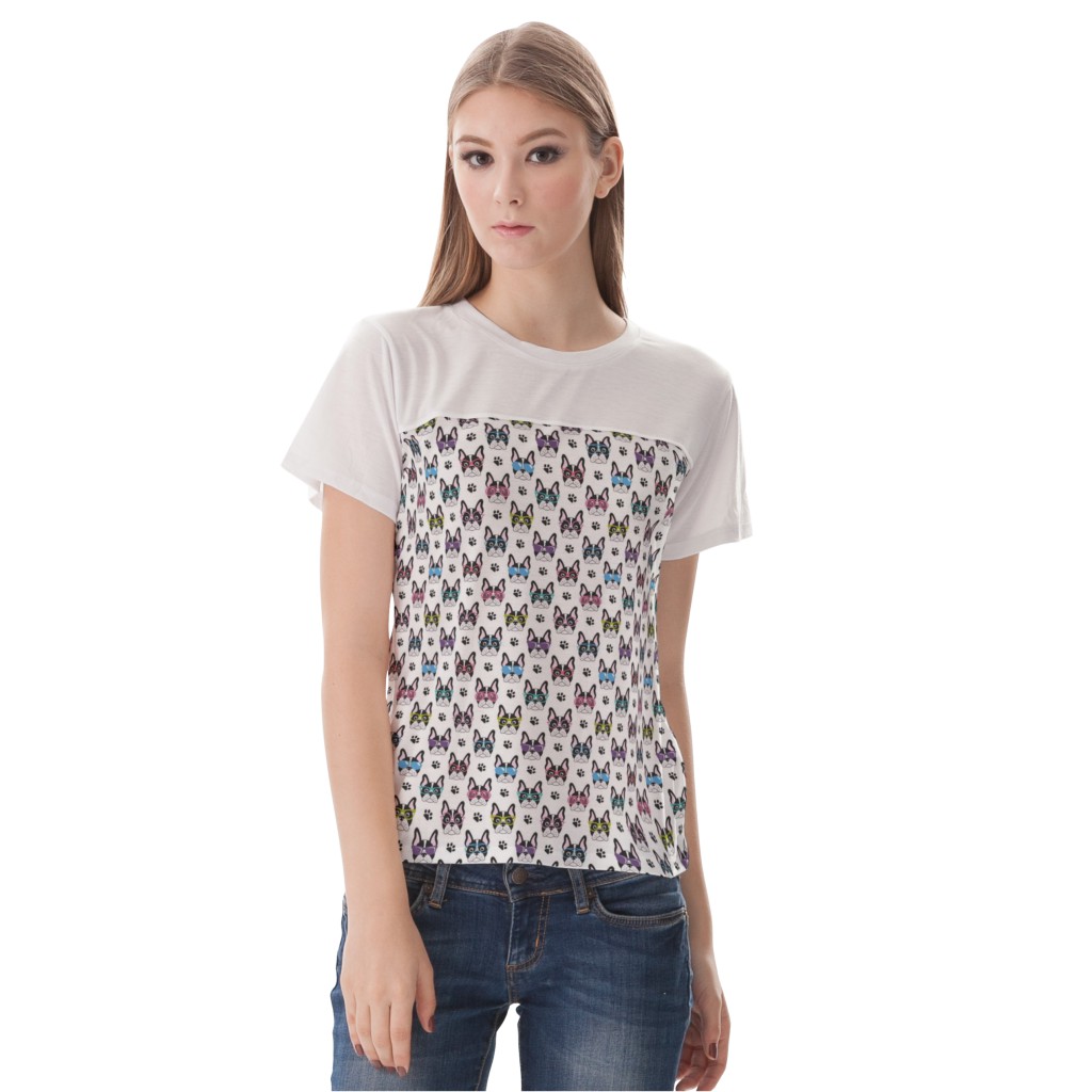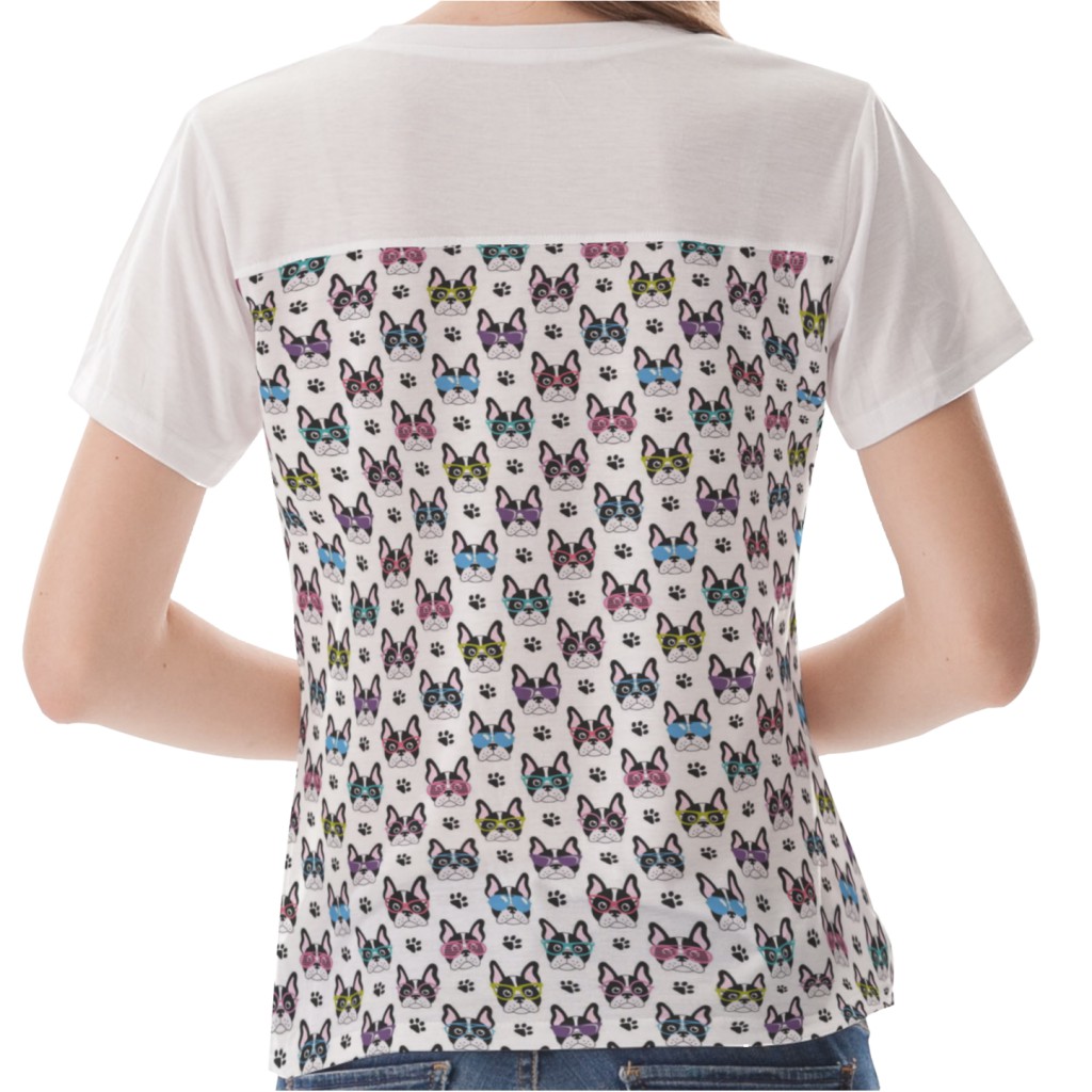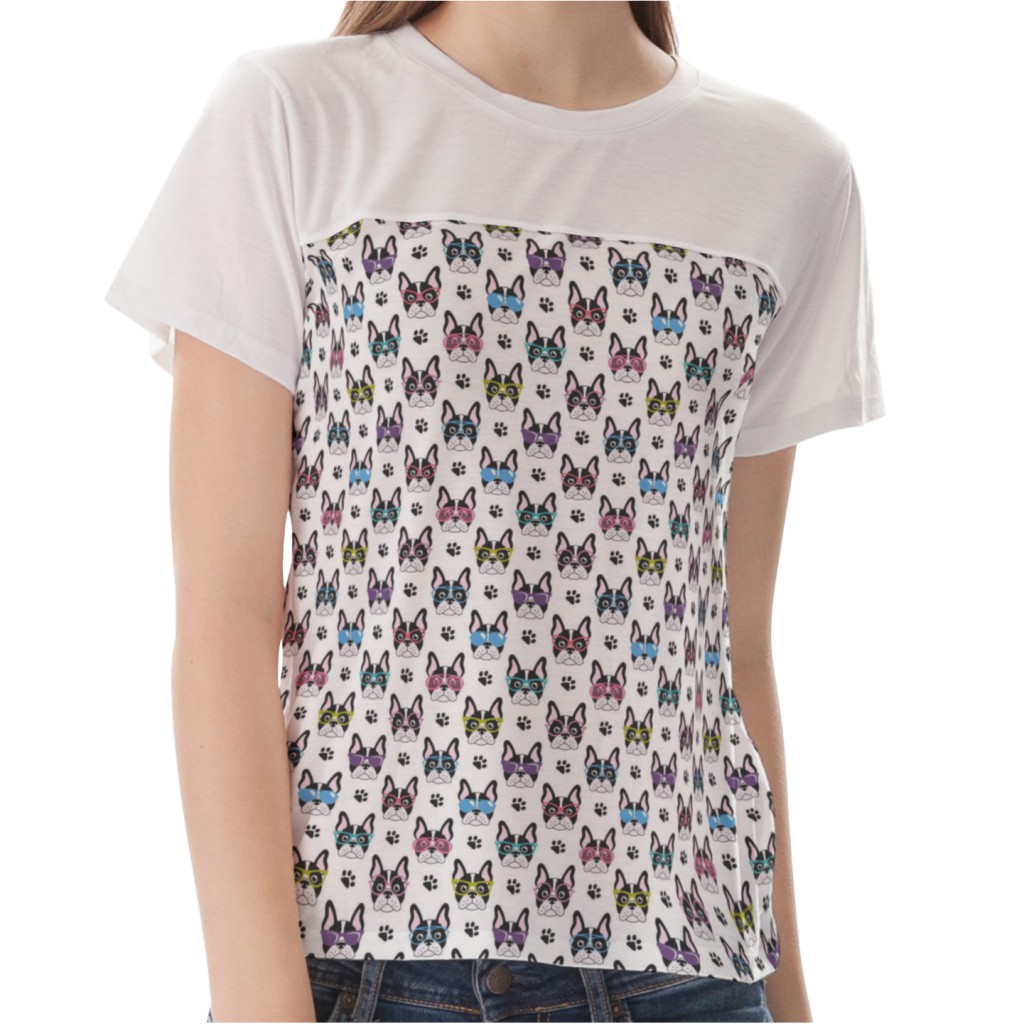 戴眼鏡的法國鬥牛犬女生圓領修身上衣材料包