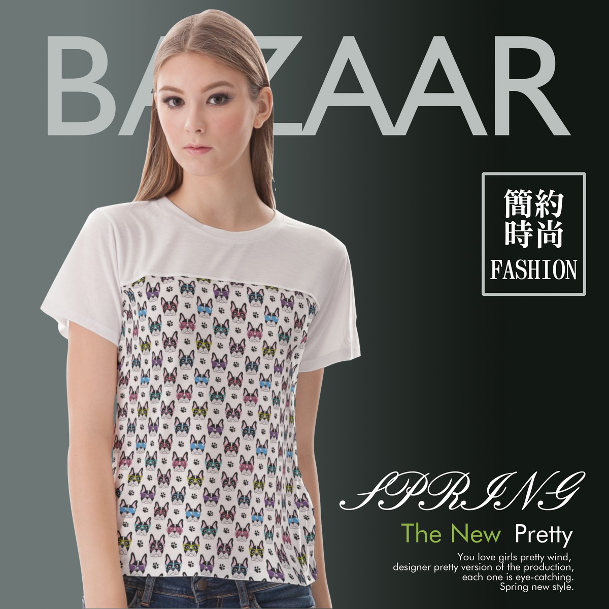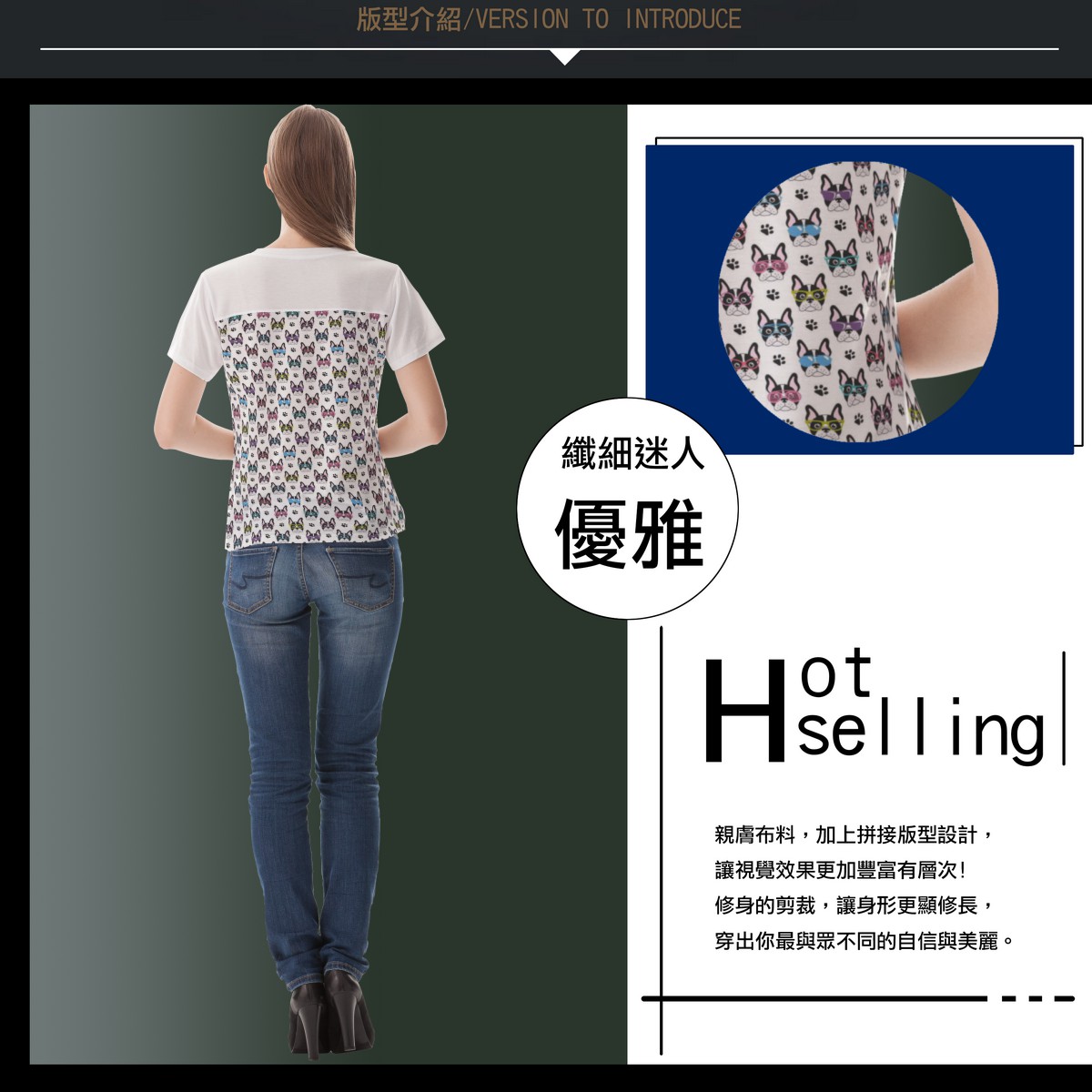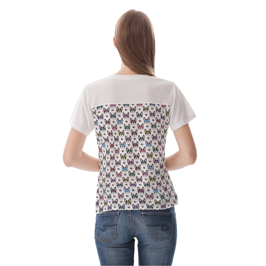 戴眼鏡的法國鬥牛犬女生圓領修身上衣材料包