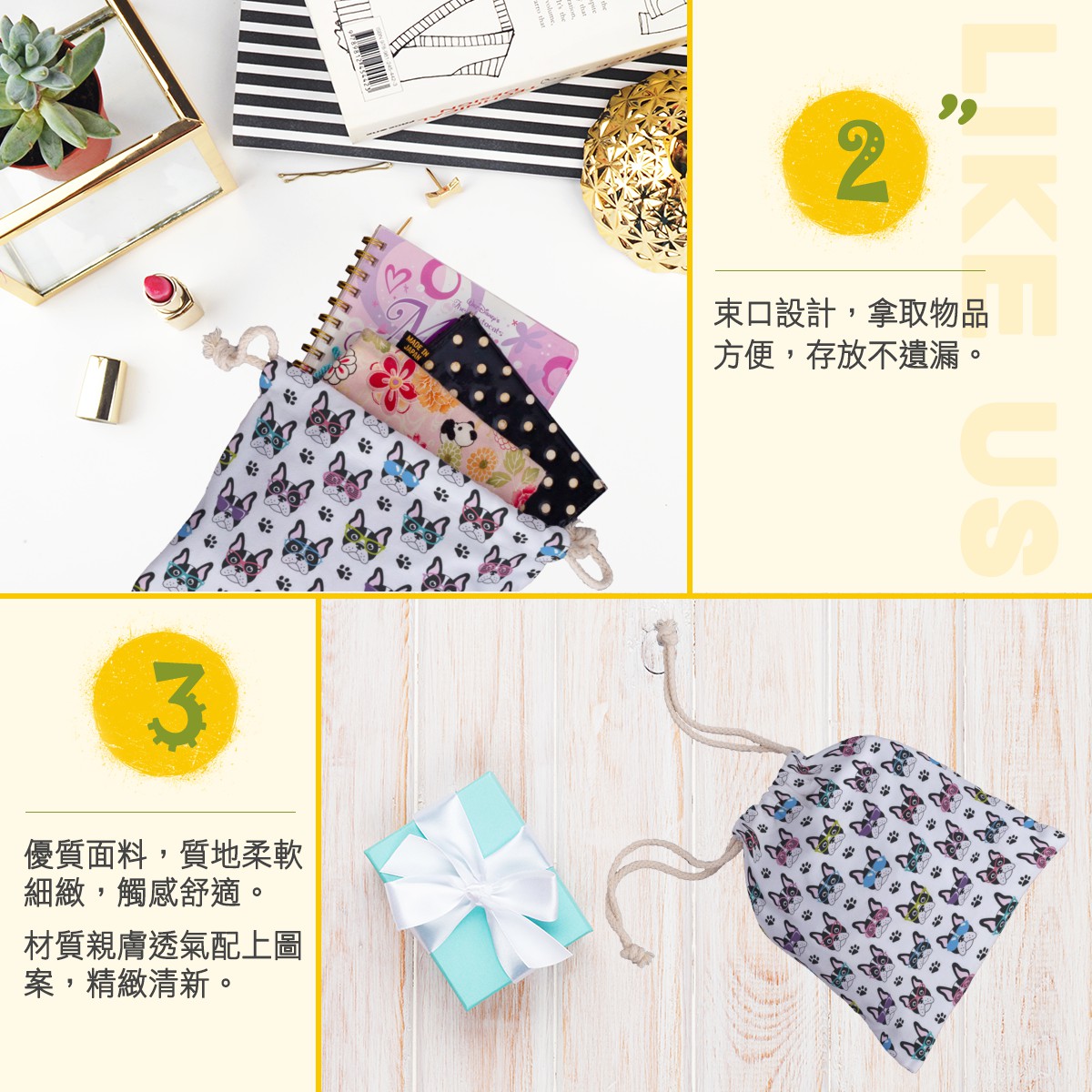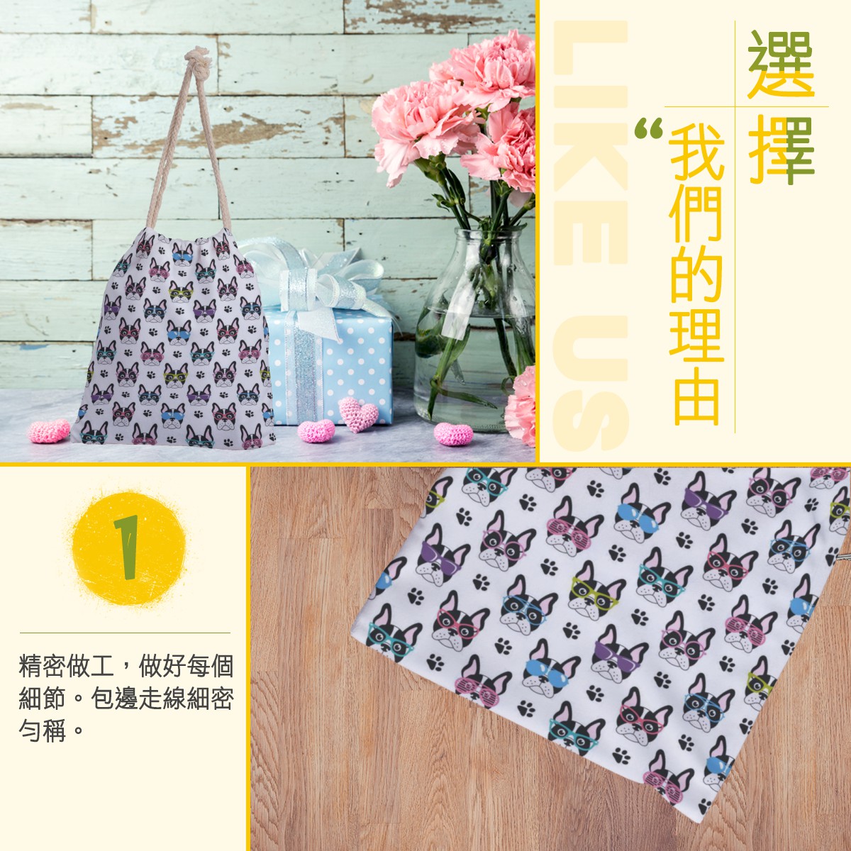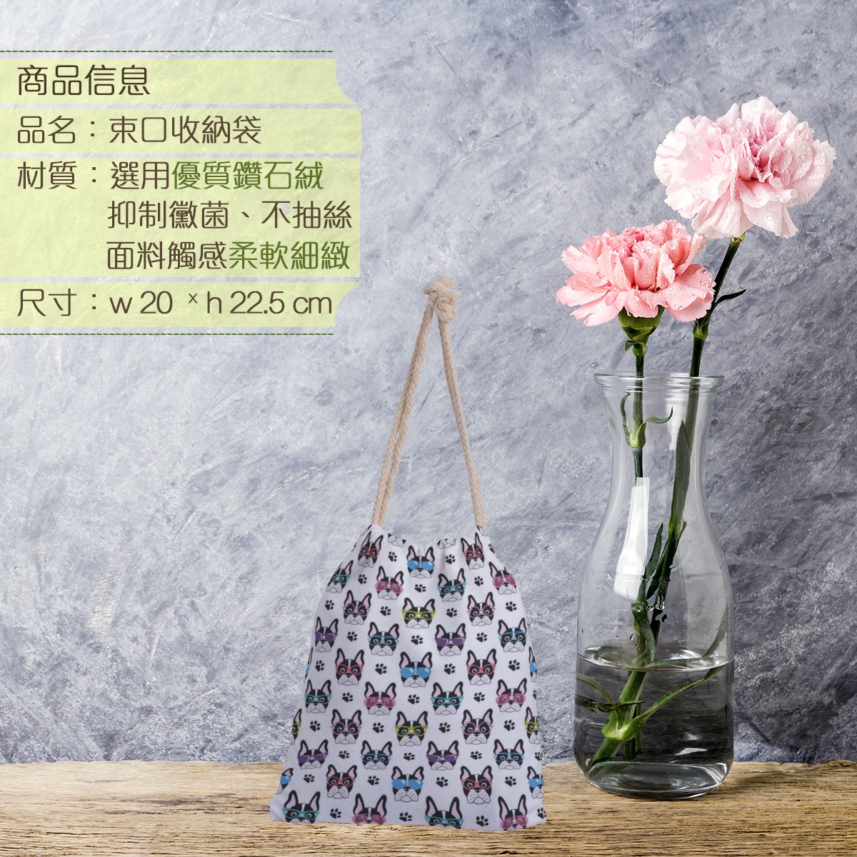 戴眼鏡的法國鬥牛犬收納束口袋材料包