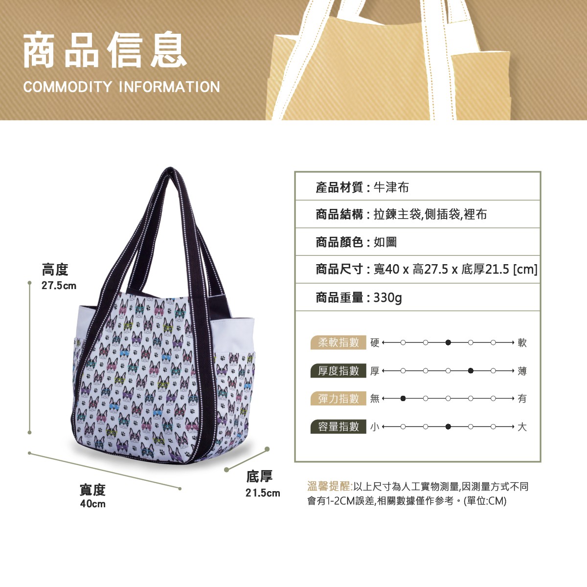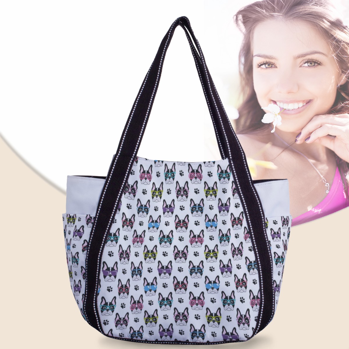 戴眼鏡的法國鬥牛犬大容量單肩包材料包