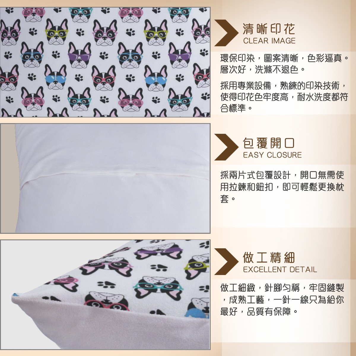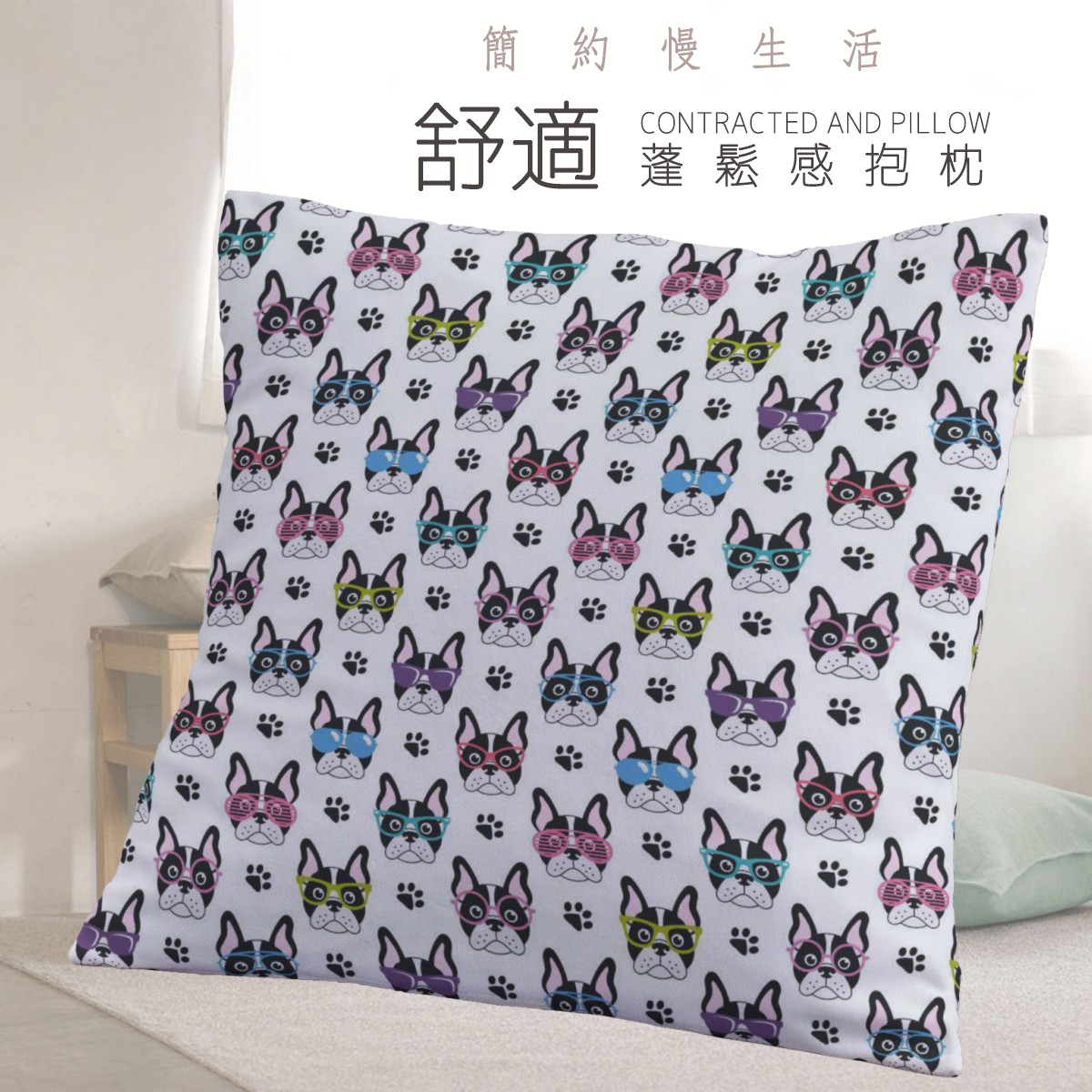 戴眼鏡的法國鬥牛犬辦公腰靠材料包
