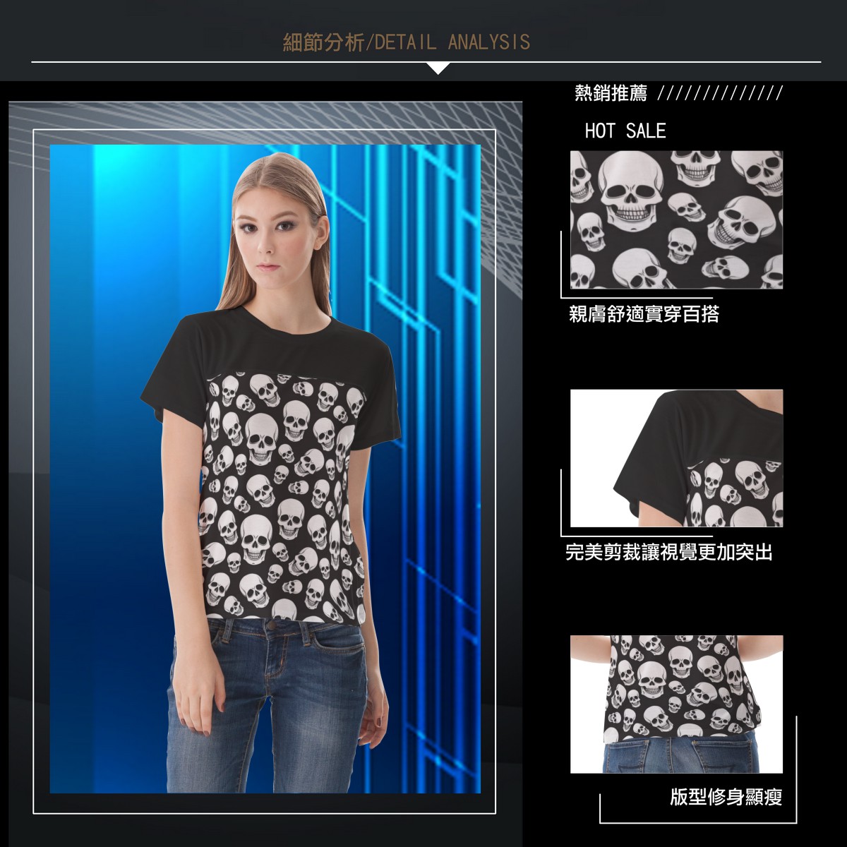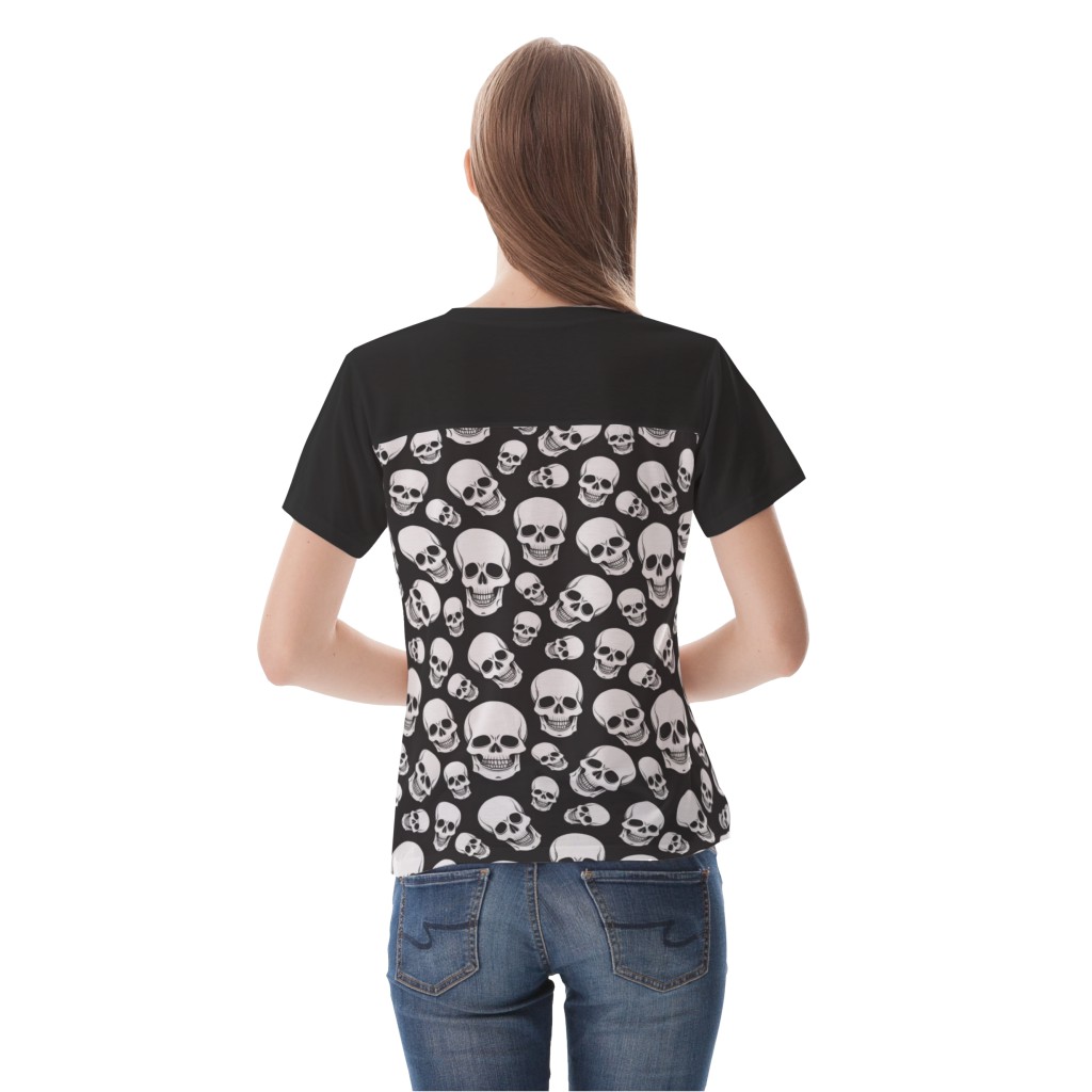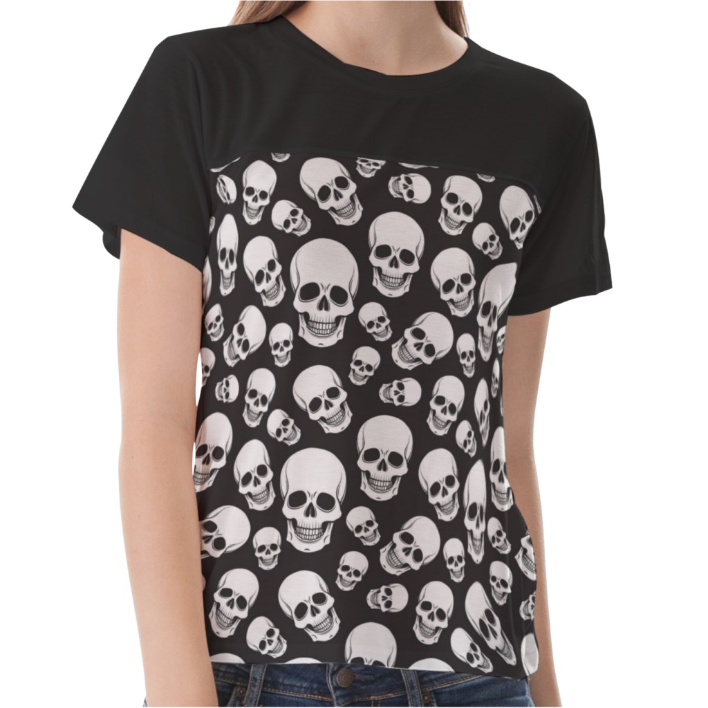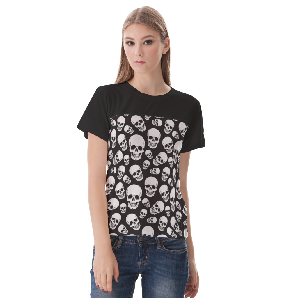 黑底骷髏頭女生圓領修身上衣材料包