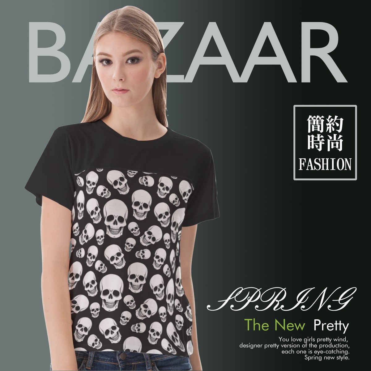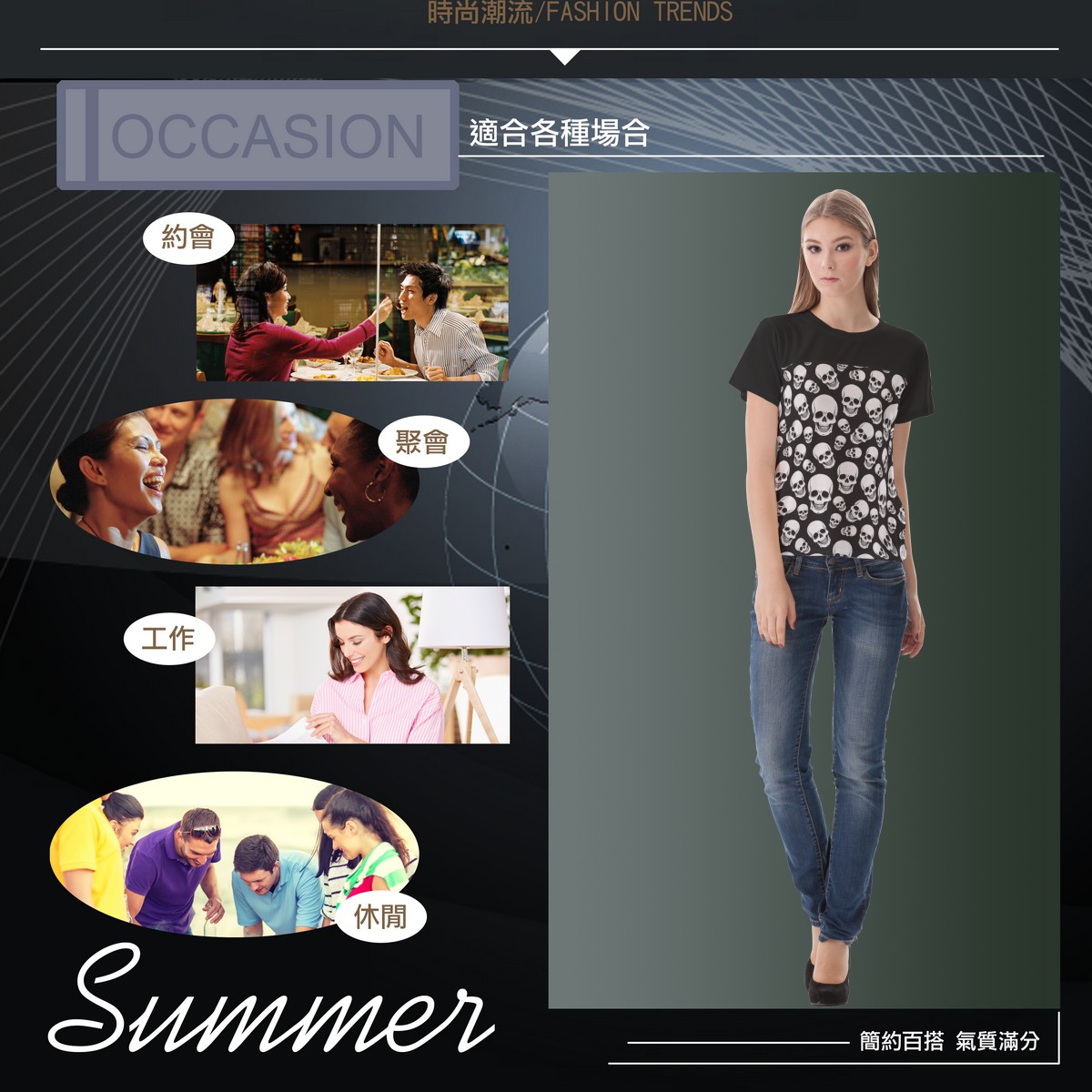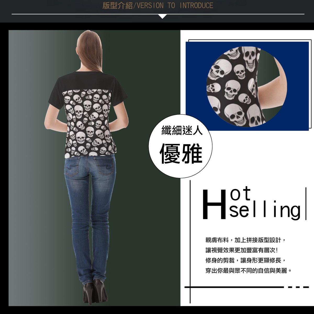 黑底骷髏頭女生圓領修身上衣材料包