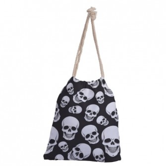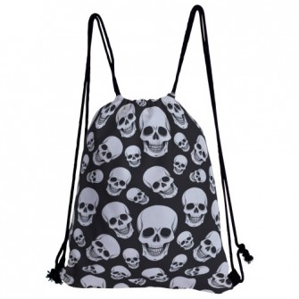 黑底骷髏頭帆布束口背包材料包