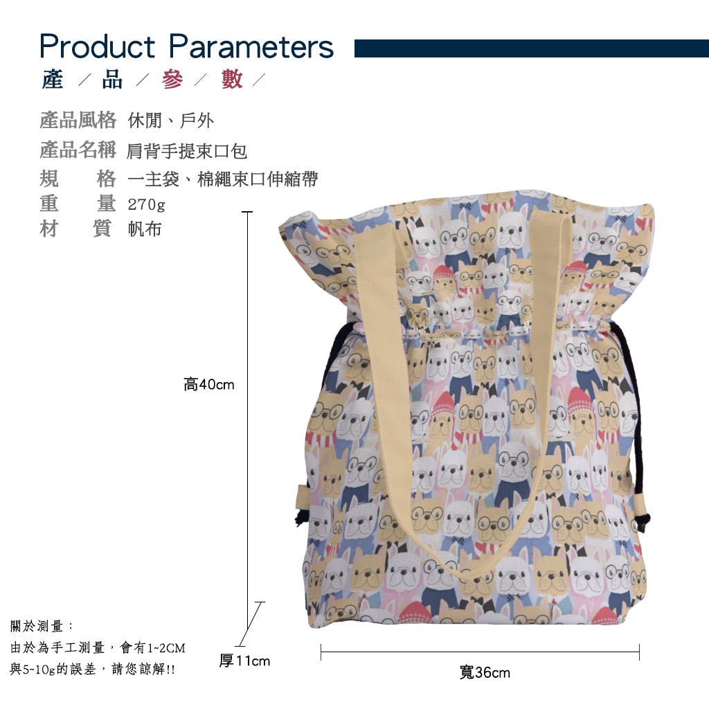 紳士法國鬥牛犬手提束口包材料包