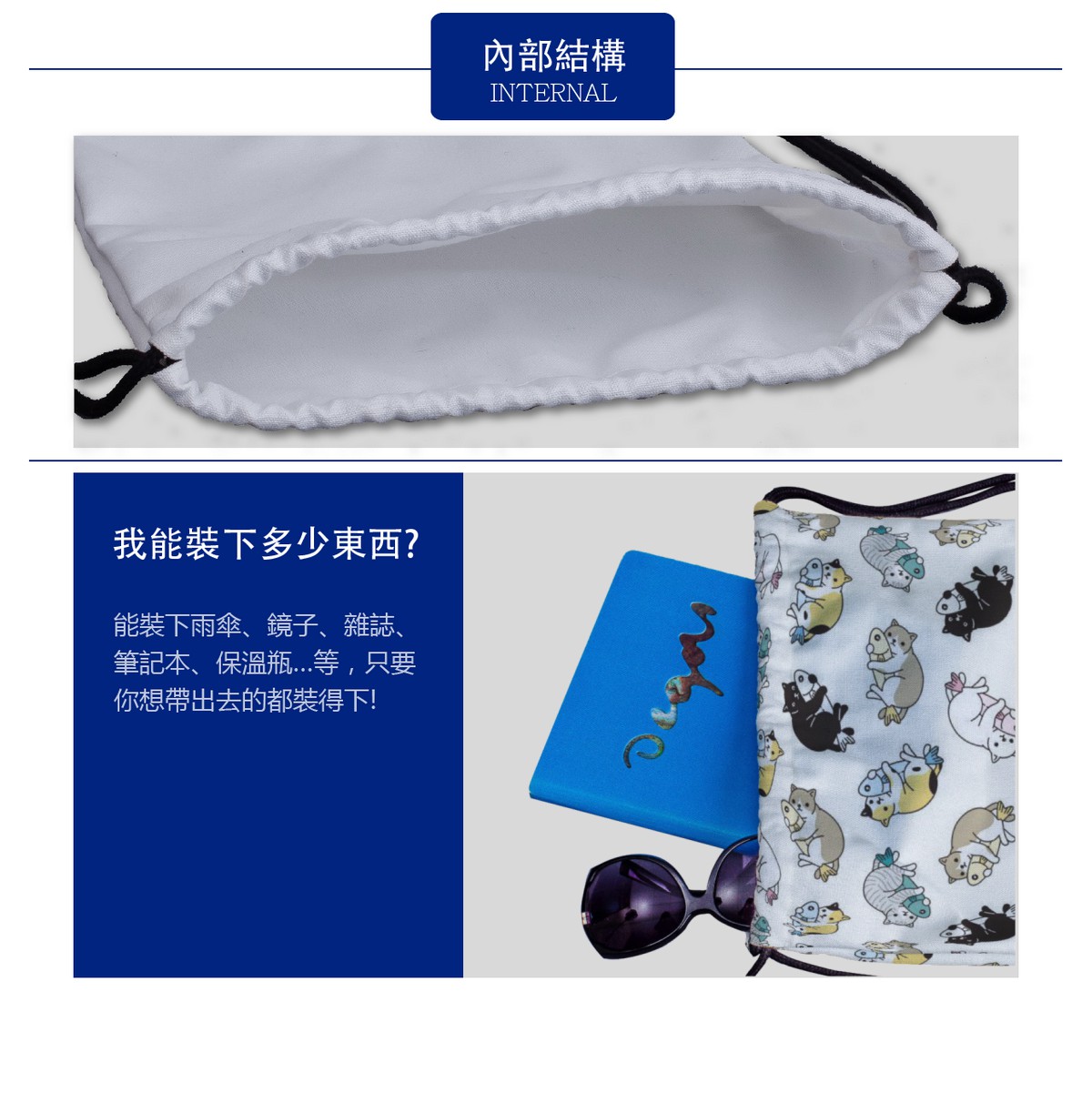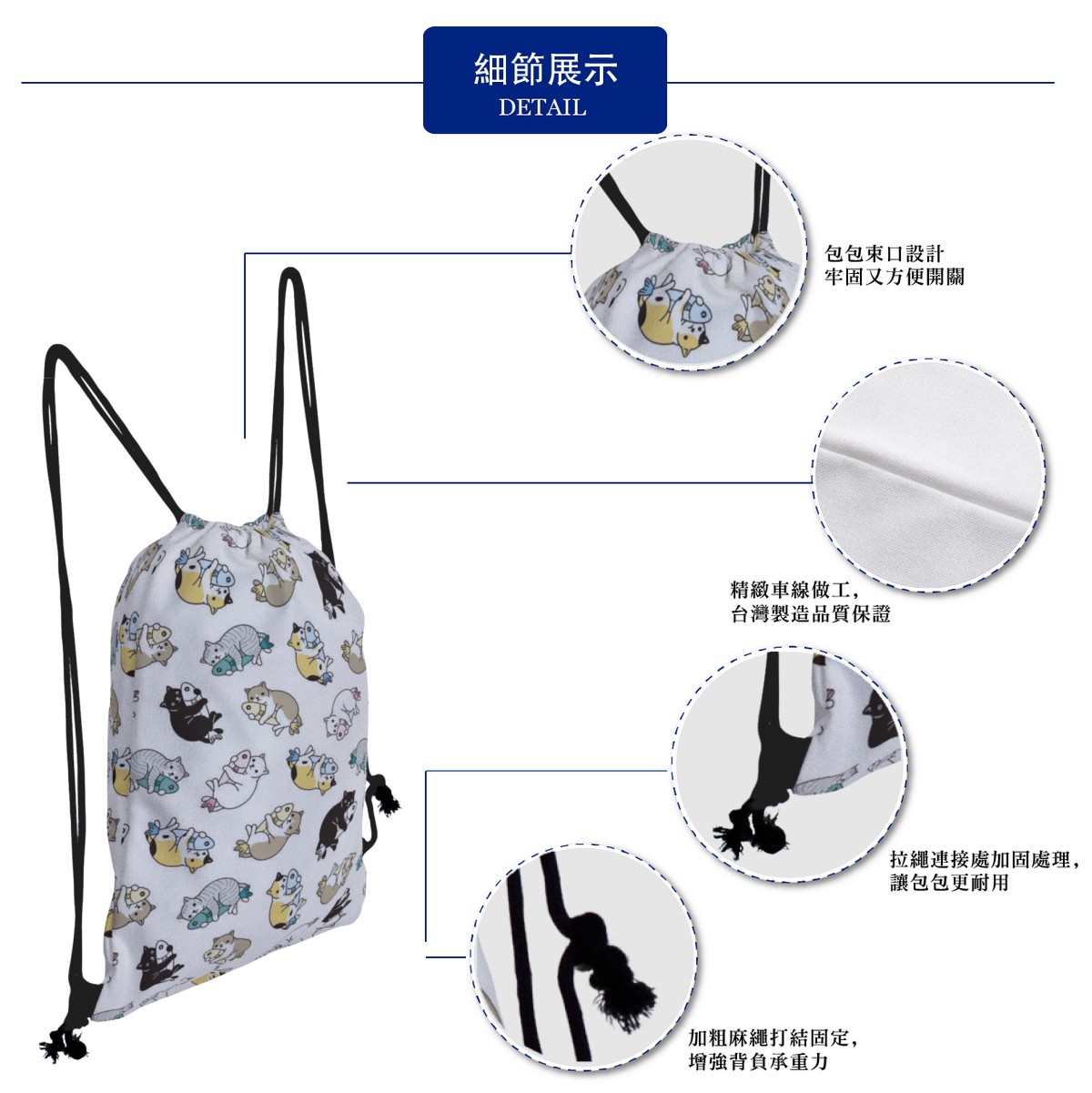 愛魚的貓帆布束口背包材料包