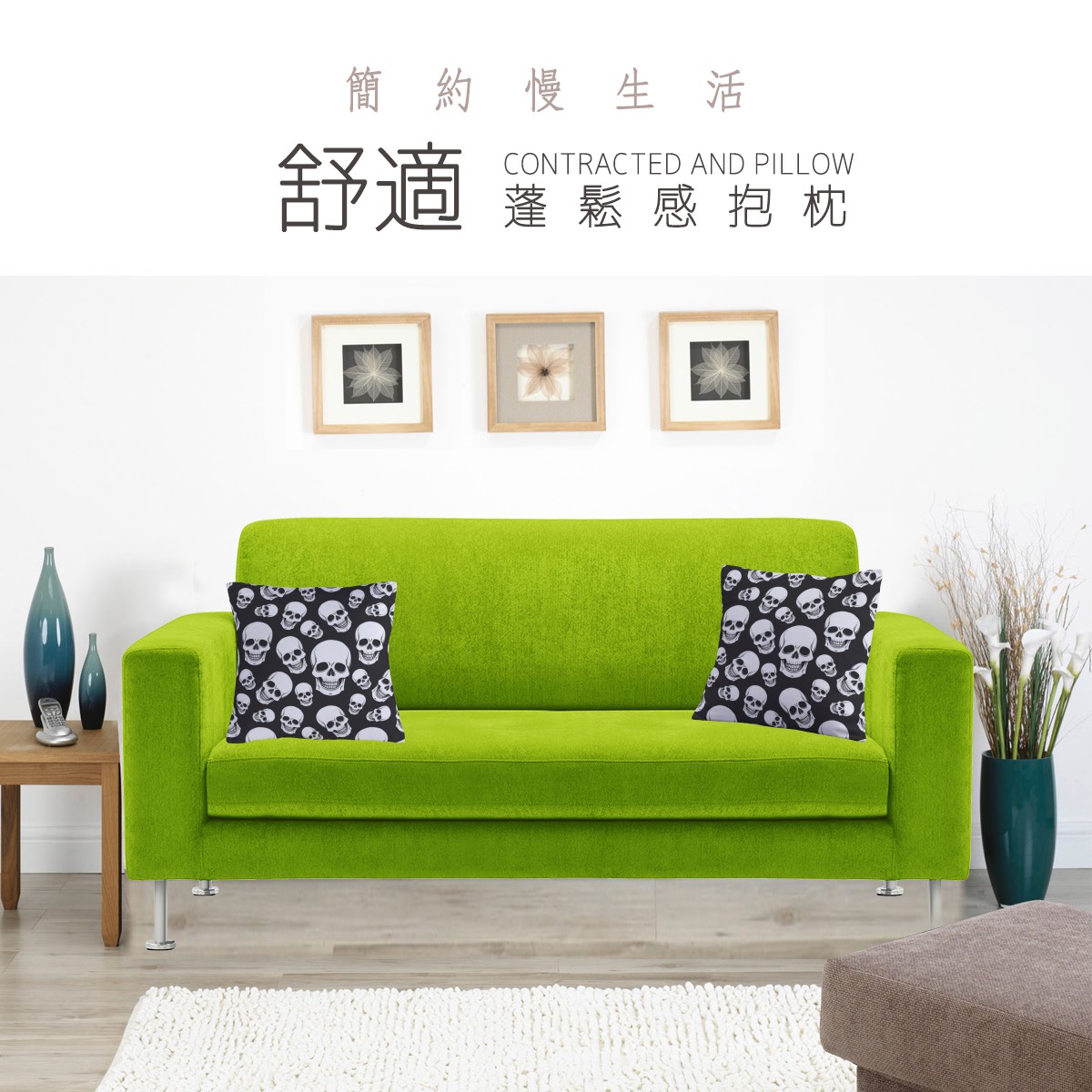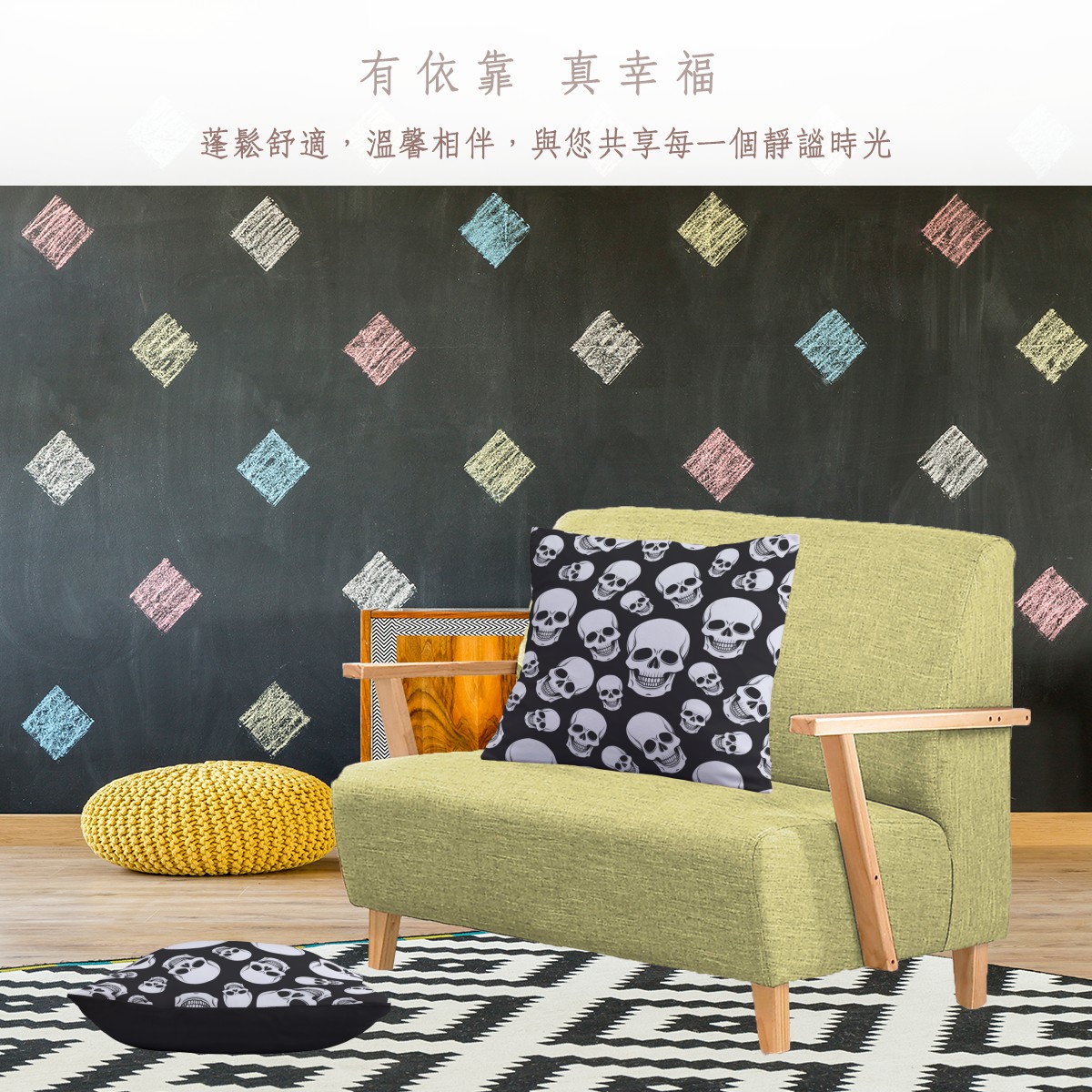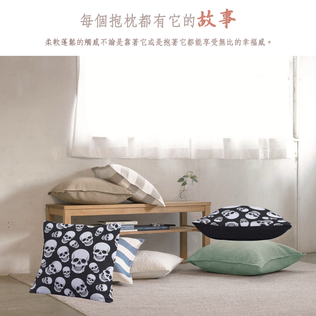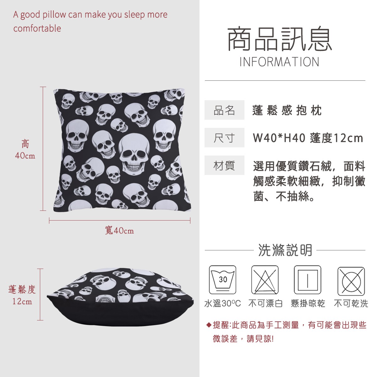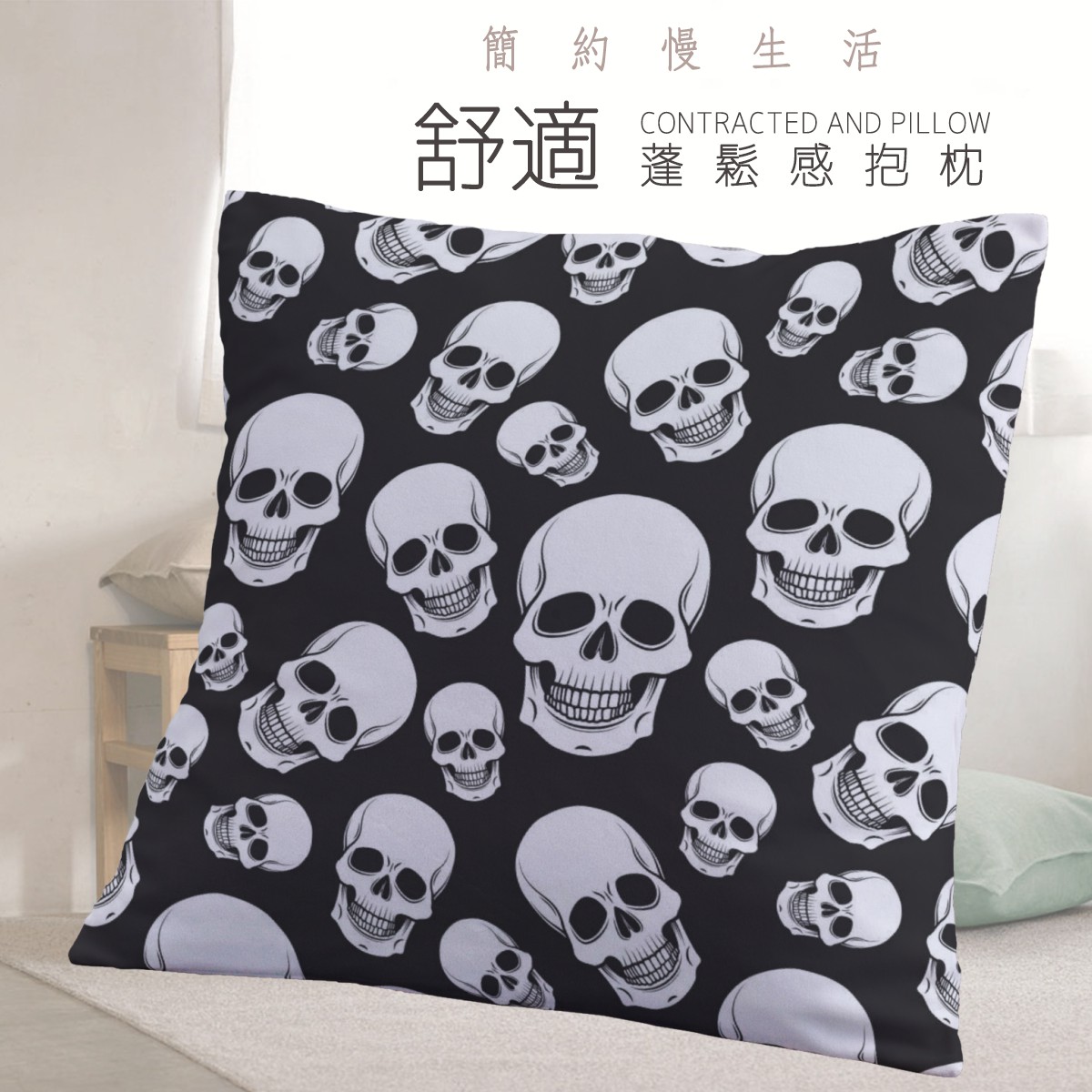 黑底骷髏頭柔軟抱枕材料包
